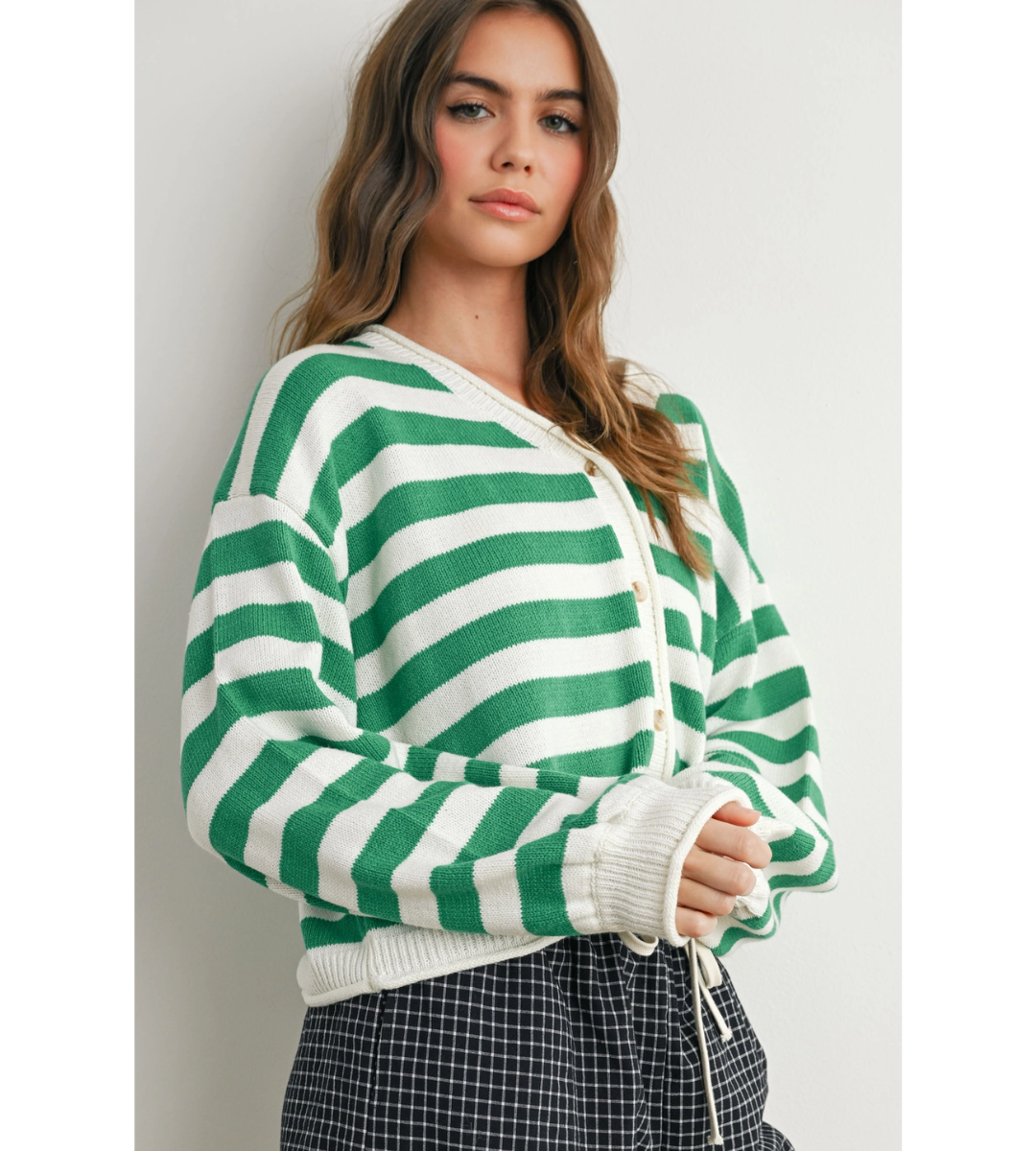 Step up your sweater game with the Button Front Striped Sweater, designed for effortless warmth and style. The unique striped pattern adds a modern twist to a classic silhouette, making it perfect for both casual days and cozy nights. Soft, breathable fabric ensures all-day comfort, while the button front lets you customize your look from open to snug.