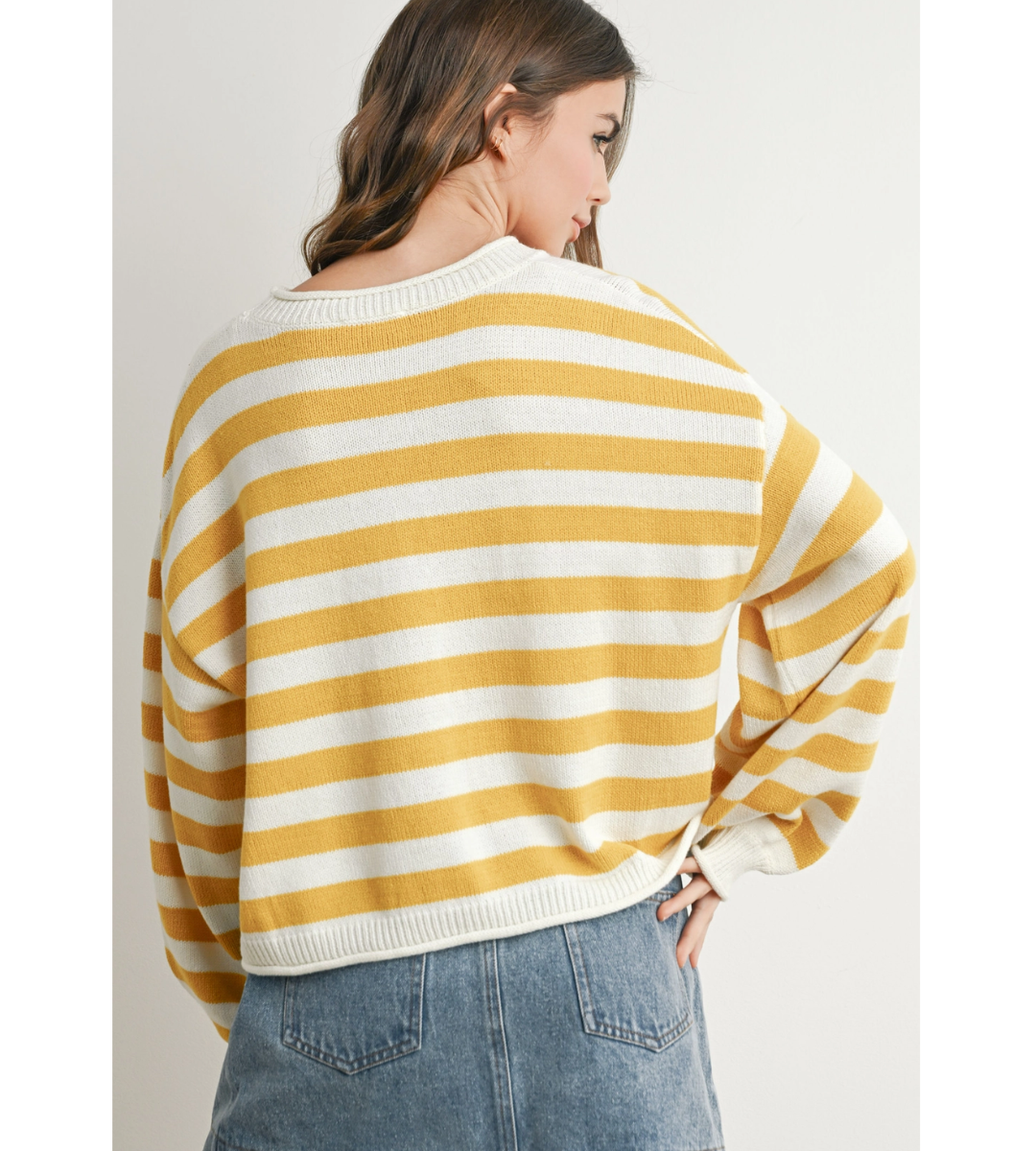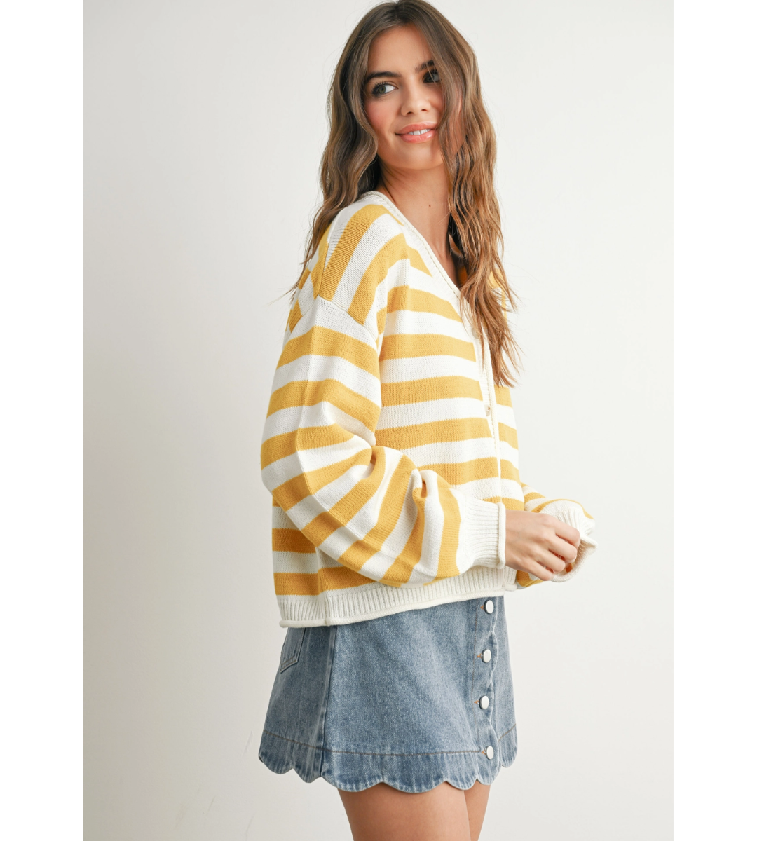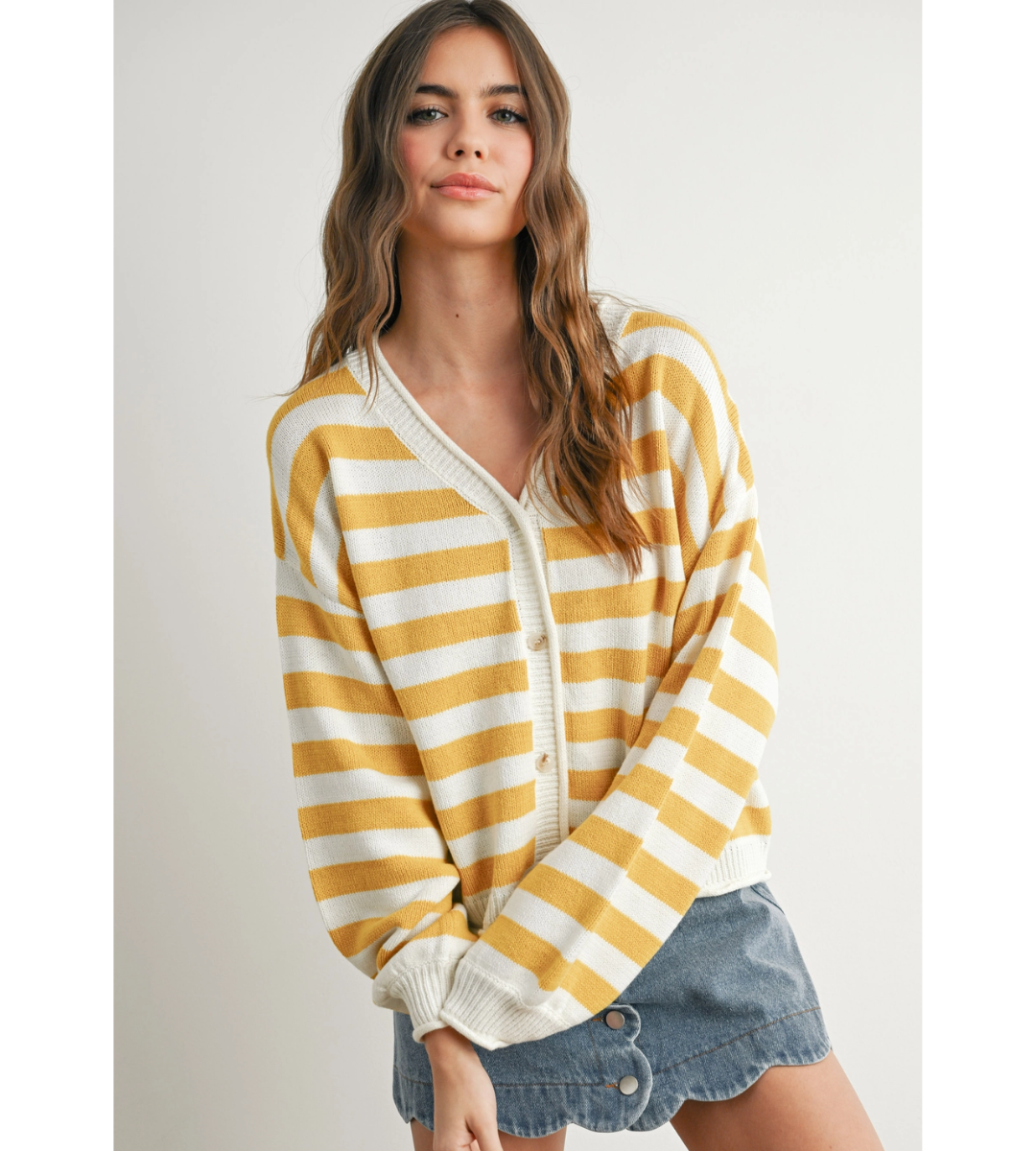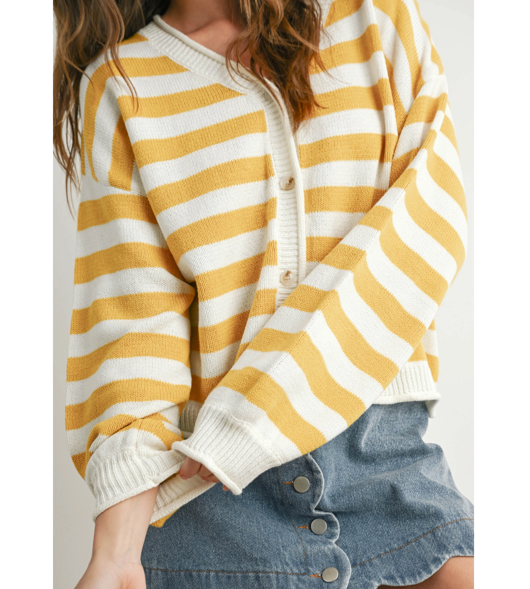 Step up your sweater game with the Button Front Striped Sweater, designed for effortless warmth and style. The unique striped pattern adds a modern twist to a classic silhouette, making it perfect for both casual days and cozy nights. Soft, breathable fabric ensures all-day comfort, while the button front lets you customize your look from open to snug.