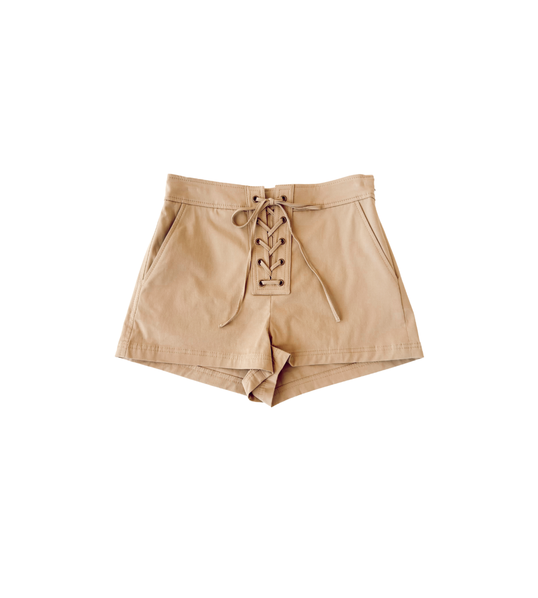 The Leon Shorts are a trendy pair of beige lace-up shorts that offer a perfect blend of comfort and style. These shorts feature a unique lace-up detail at the front, adding a touch of edgy charm to their otherwise laid-back design. The neutral beige color makes them versatile and easy to pair with a wide range of tops, while the relaxed fit ensures all-day comfort.