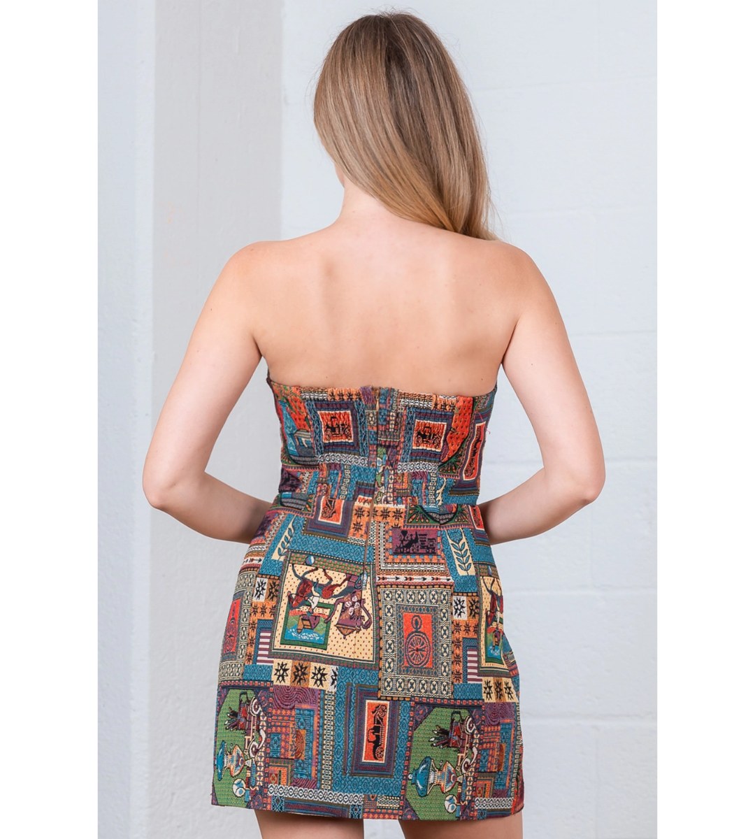 Turn heads in the Chloe Dress — a stunning strapless mini crafted in a luxe antique jacquard. With its rich brown multi-toned pattern and soft textured finish, this bustier-style silhouette hugs in all the right places. Designed with a vintage-inspired sweetheart neckline and a flattering fitted shape, the Chloe is made to celebrate curves. Finished with a hidden back zipper, it's your go-to for nights out, special occasions, and statement moments.