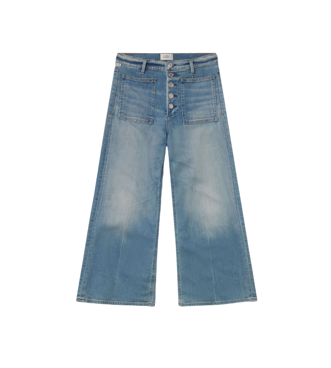 The Lyra is a vintage inspired silhouette that sits high on the waist with an easy, relaxed top block cut with a cropped inseam with a voluminous raw hem wide leg. By Citizens of Humanity.