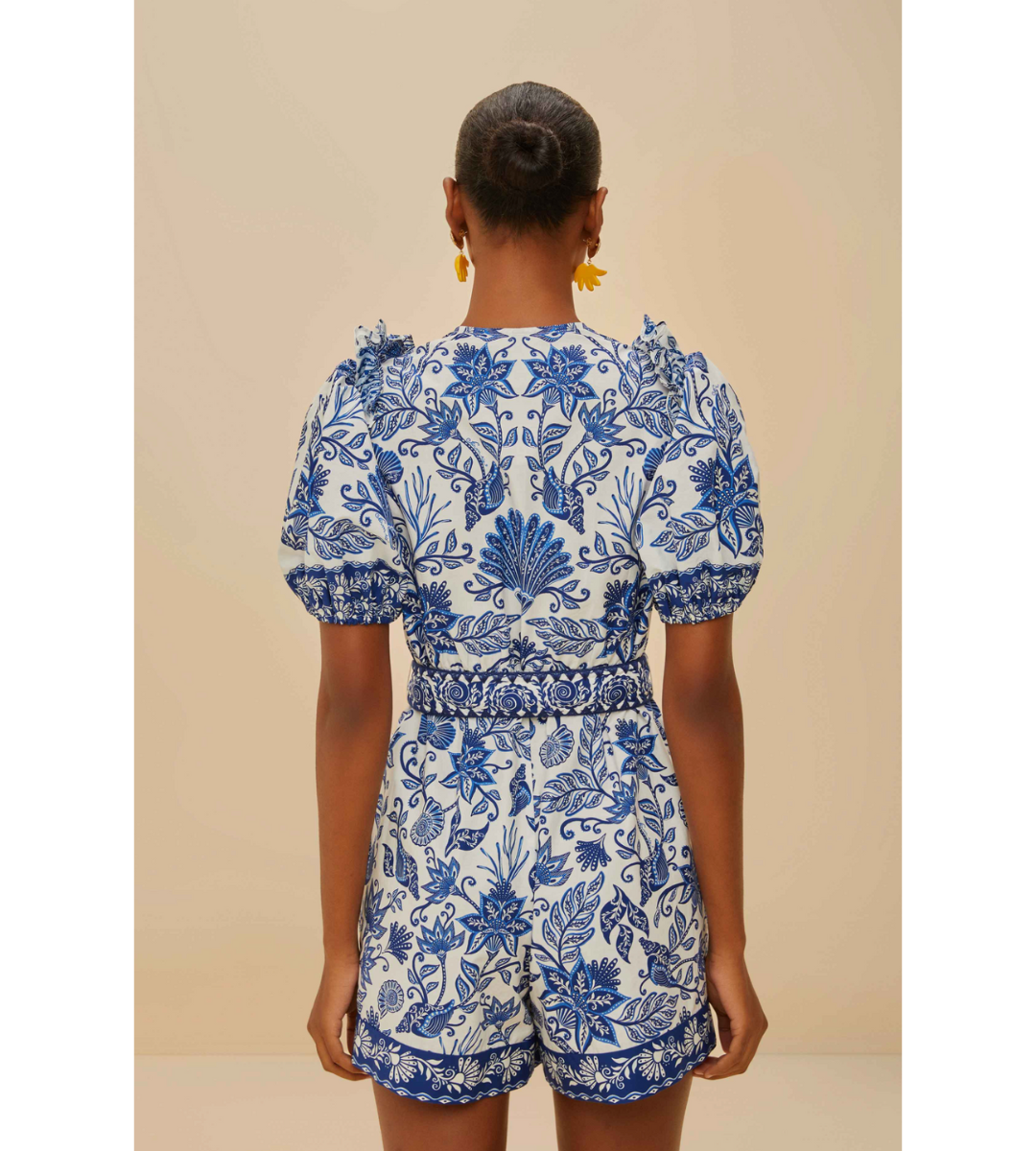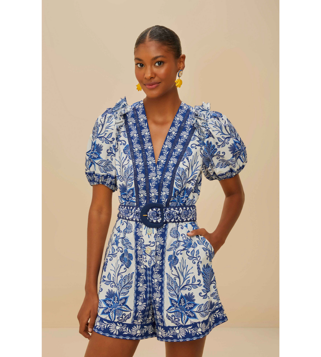 The Shell Garden Romper is a breezy, playful piece that captures tropical charm with a touch of elegance. Featuring a vibrant seashell and botanical print set against a soft off-white backdrop, this romper blends whimsy with sophistication. It has a flattering cinched waist, relaxed shorts, and puffed short sleeves, creating a feminine silhouette perfect for warm-weather outings. Lightweight and easy to wear, it’s ideal for beach days, brunches, or vacations.