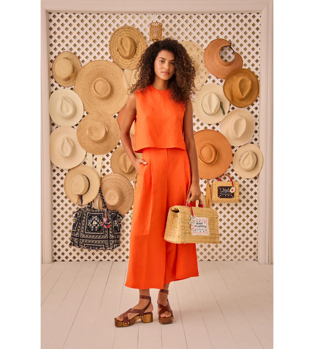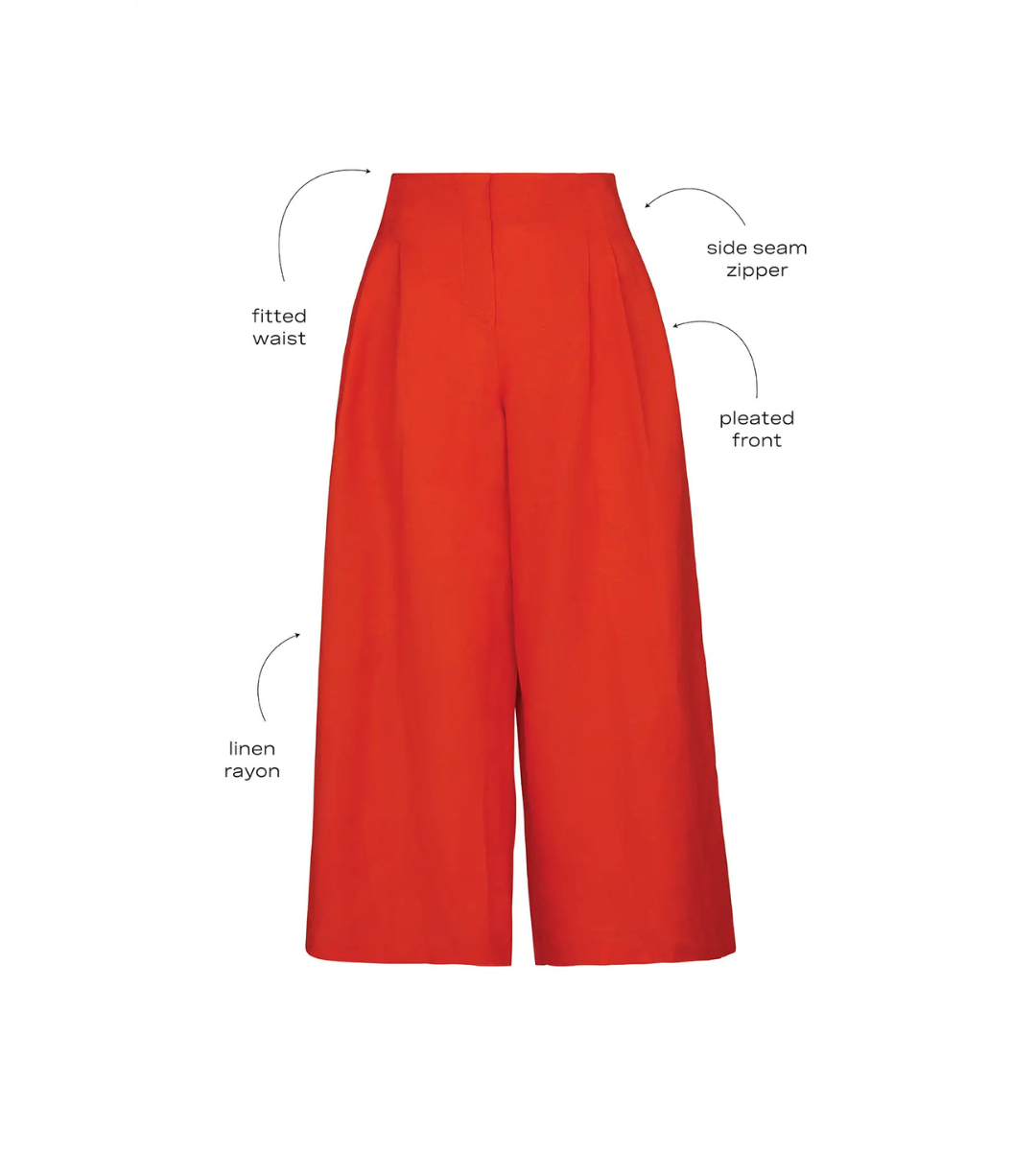 Crafted from luxurious non-stretch linen, this high-waisted silhouette features a flattering pleated front, discreet on-seam pockets, and a wide, relaxed leg that falls just above the ankle. Effortlessly refined yet easy to wear, these pants bring timeless polish to any look. Pair them with the matching Manning Top for a bold, head-turning set.