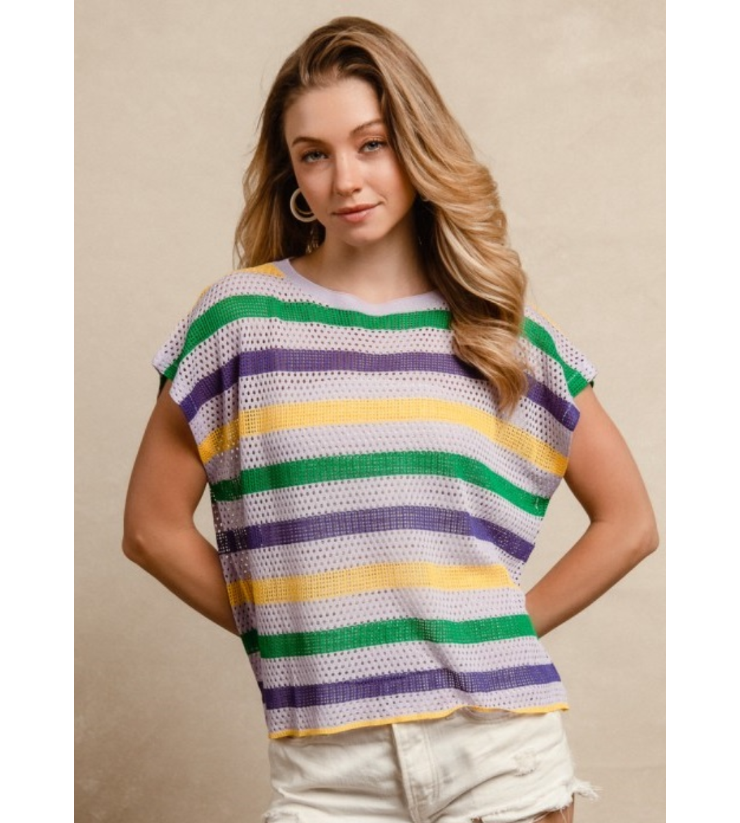 Celebrate Mardi Gras in style with this lavender boxy top, designed for effortless comfort and festive flair. The airy, lightweight fabric keeps you cool while the relaxed boxy fit gives it a modern, easygoing look.