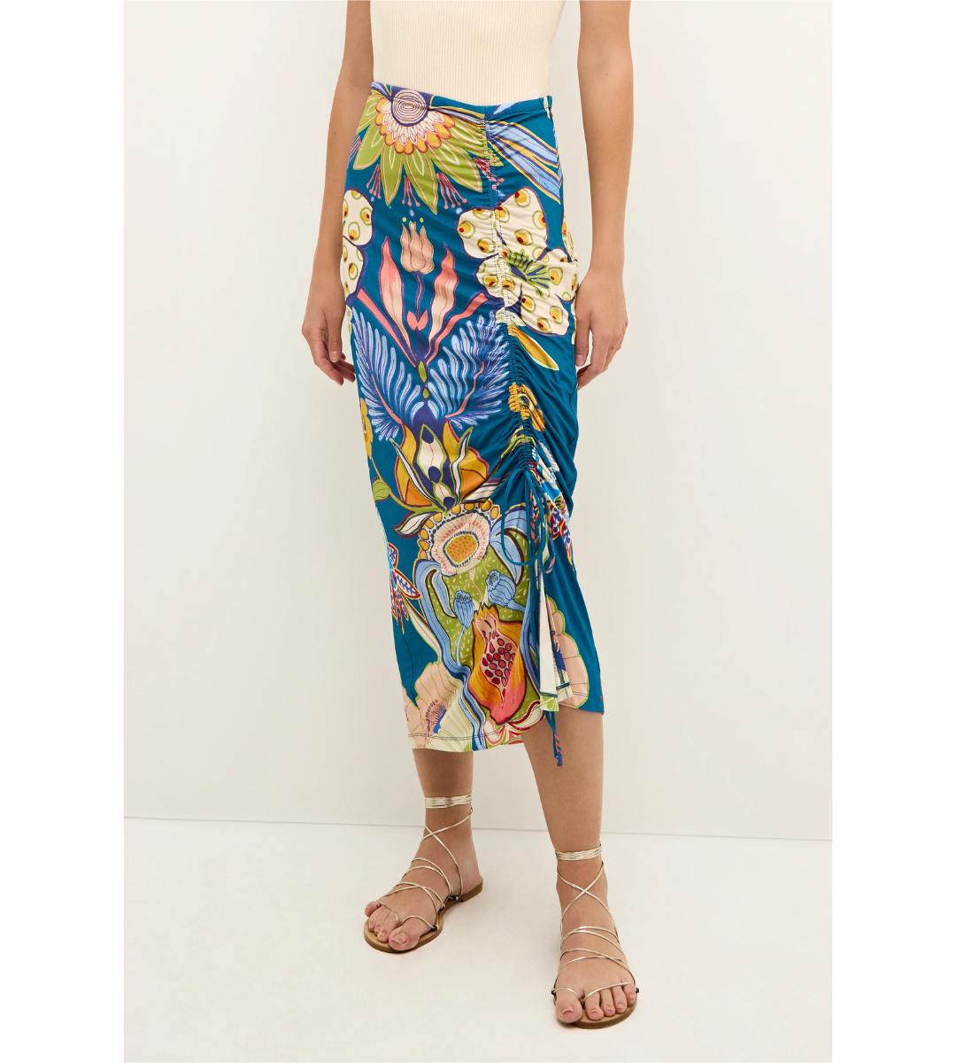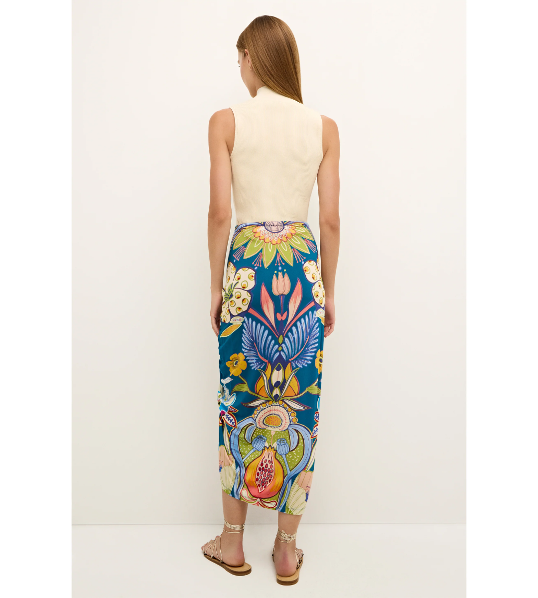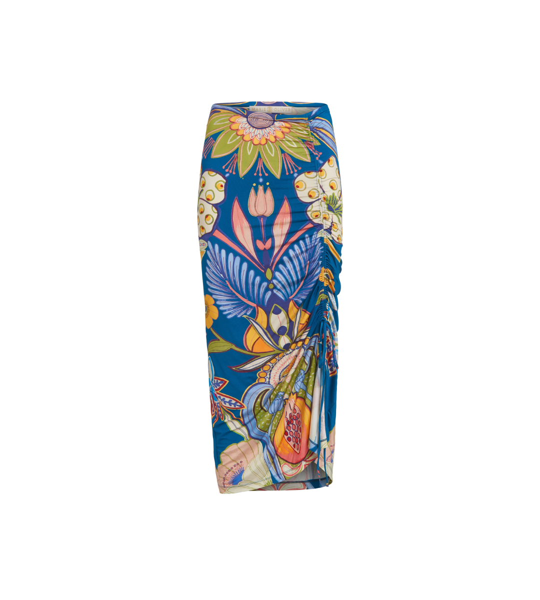 From its tropical color palette to the oversized botanical placement print, this slinky silhouette makes every occasion feel like vacation. Cut from a figure-skimming jersey blend, Fowler features a side slit with ties for an adjustable fit. Pair with your favorite tank, or over your bathing suit to go from beach to bar with ease. By Marie Oliver.