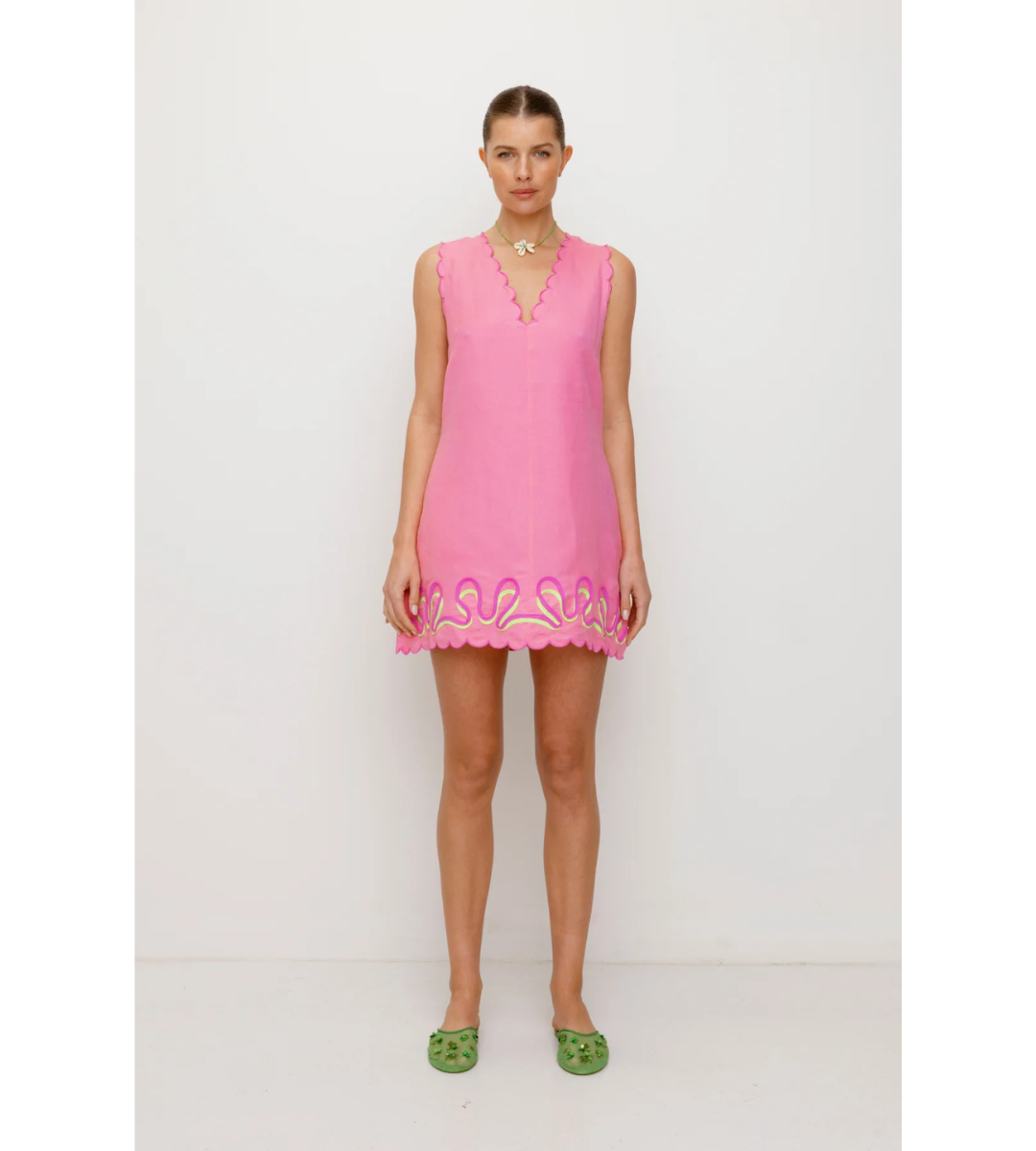 Introducing the Zabelle Mini Dress, a must-have loose fitting mini dress for your wardrobe. This dress has stunning scalloped hem detail and contrast colour detailing.