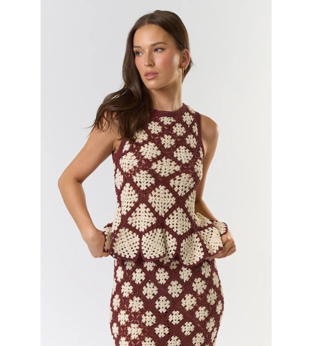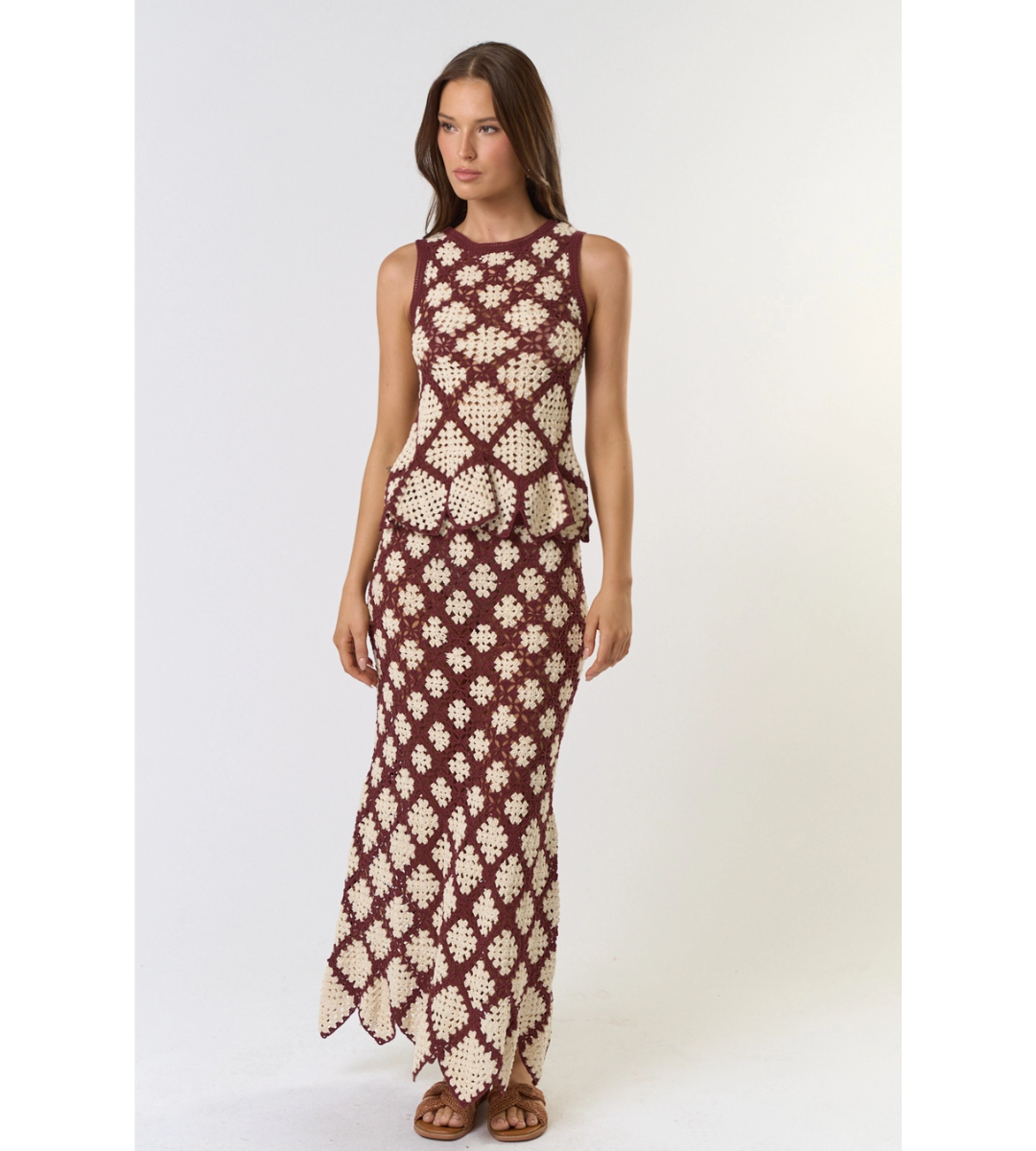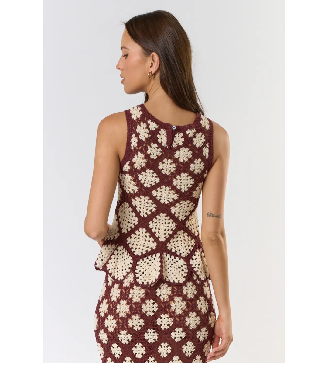 Embrace laid-back summer vibes in this crochet flared tank top, featuring intricate crochet tile detailing. With its breezy fit and boho-chic style, it's an effortless piece perfect for festivals, beach days, or everyday sunny strolls.