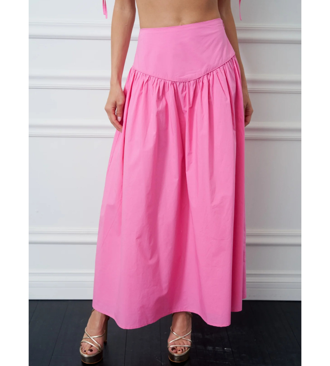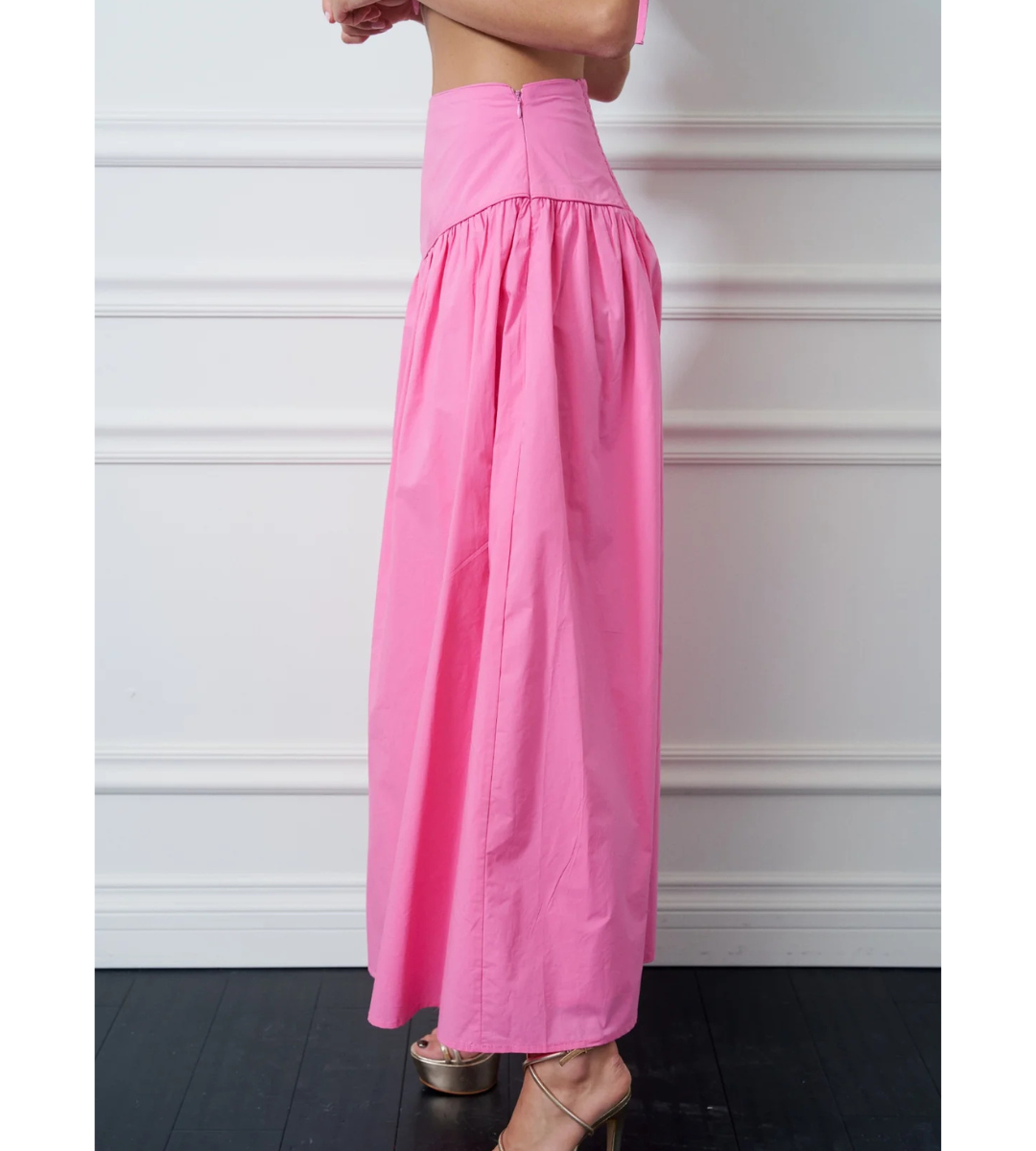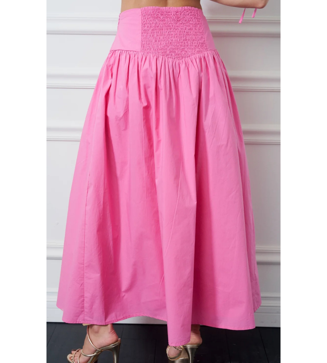 Timeless elegance meets modern detail in the Emmeline Maxi Skirt. Crafted from high-quality cotton poplin, this flowing skirt features delicate piping accents and a flattering high-waisted silhouette. The maxi length adds graceful movement and refined sophistication, making it perfect for everything from garden parties to elevated everyday wear.