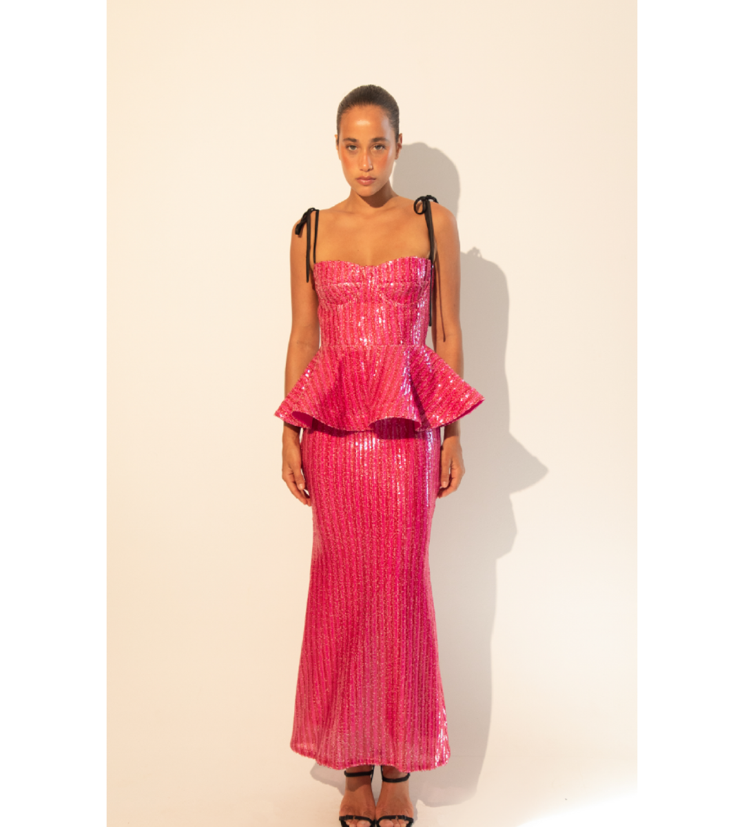Long skirt with a soft drape and a figure-slimming silhouette, with an invisible zipper at the back.