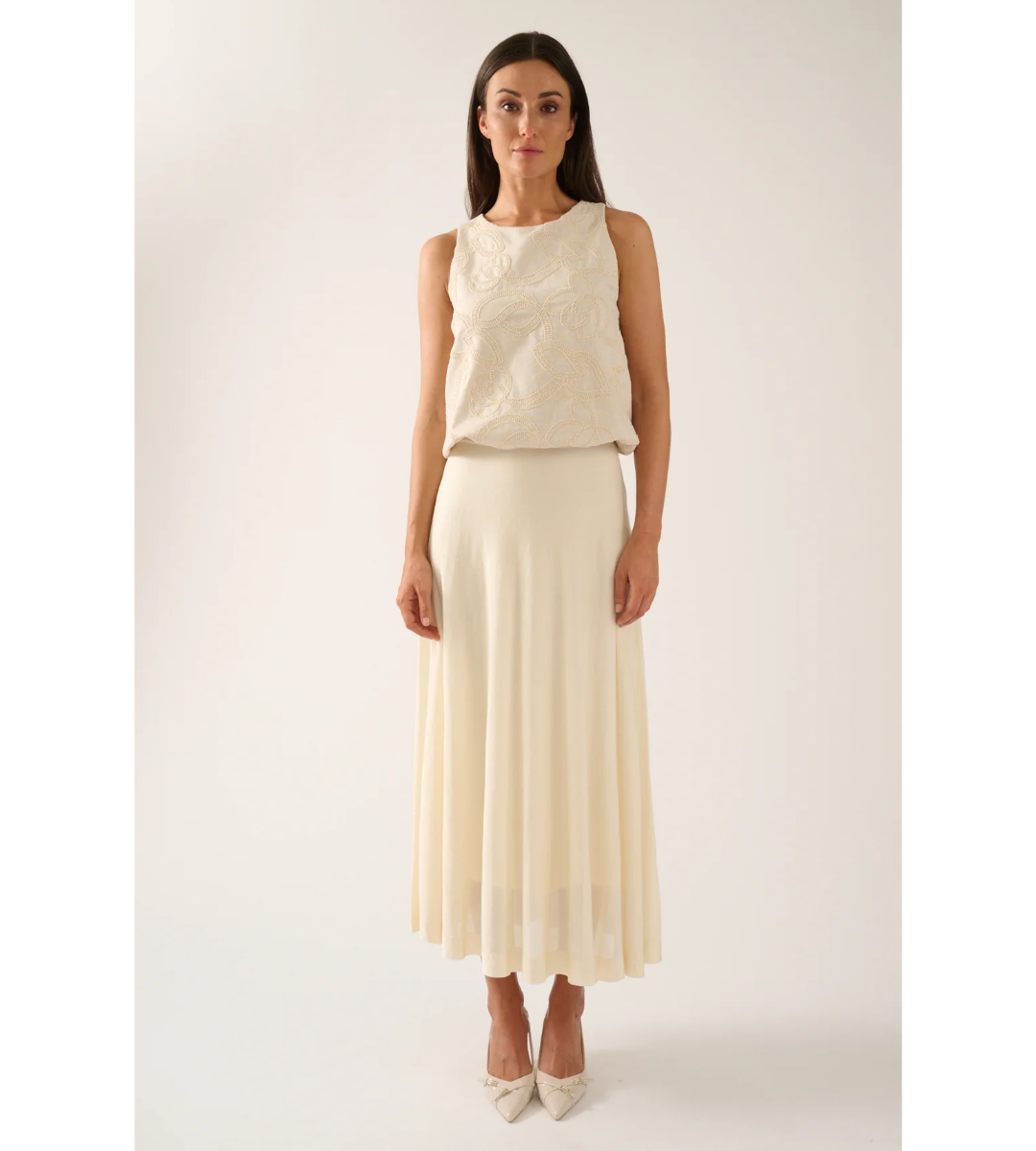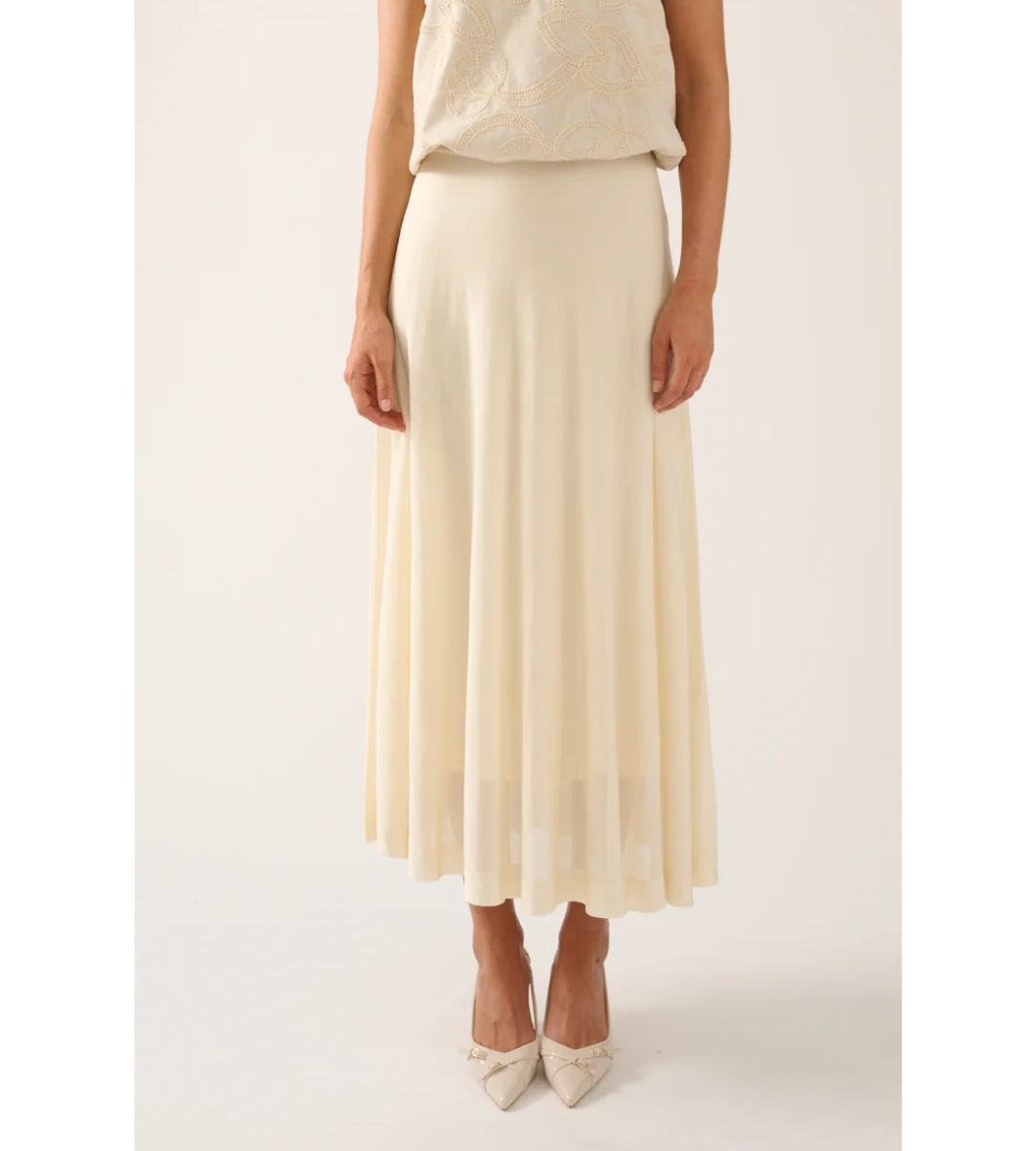 Elevate your wardrobe with this Ivory Midi Skirt from Oscar The Collection — a timeless piece that blends refined style with everyday versatility. Cut to a flattering midi length, the skirt drapes beautifully in a soft ivory hue that pairs effortlessly with both casual and elevated looks.