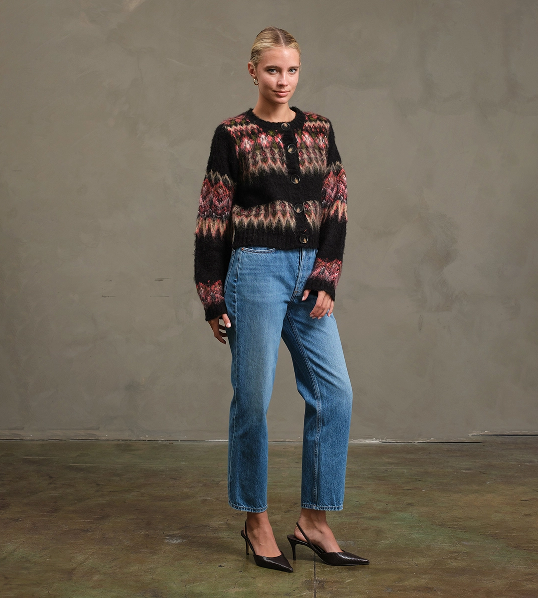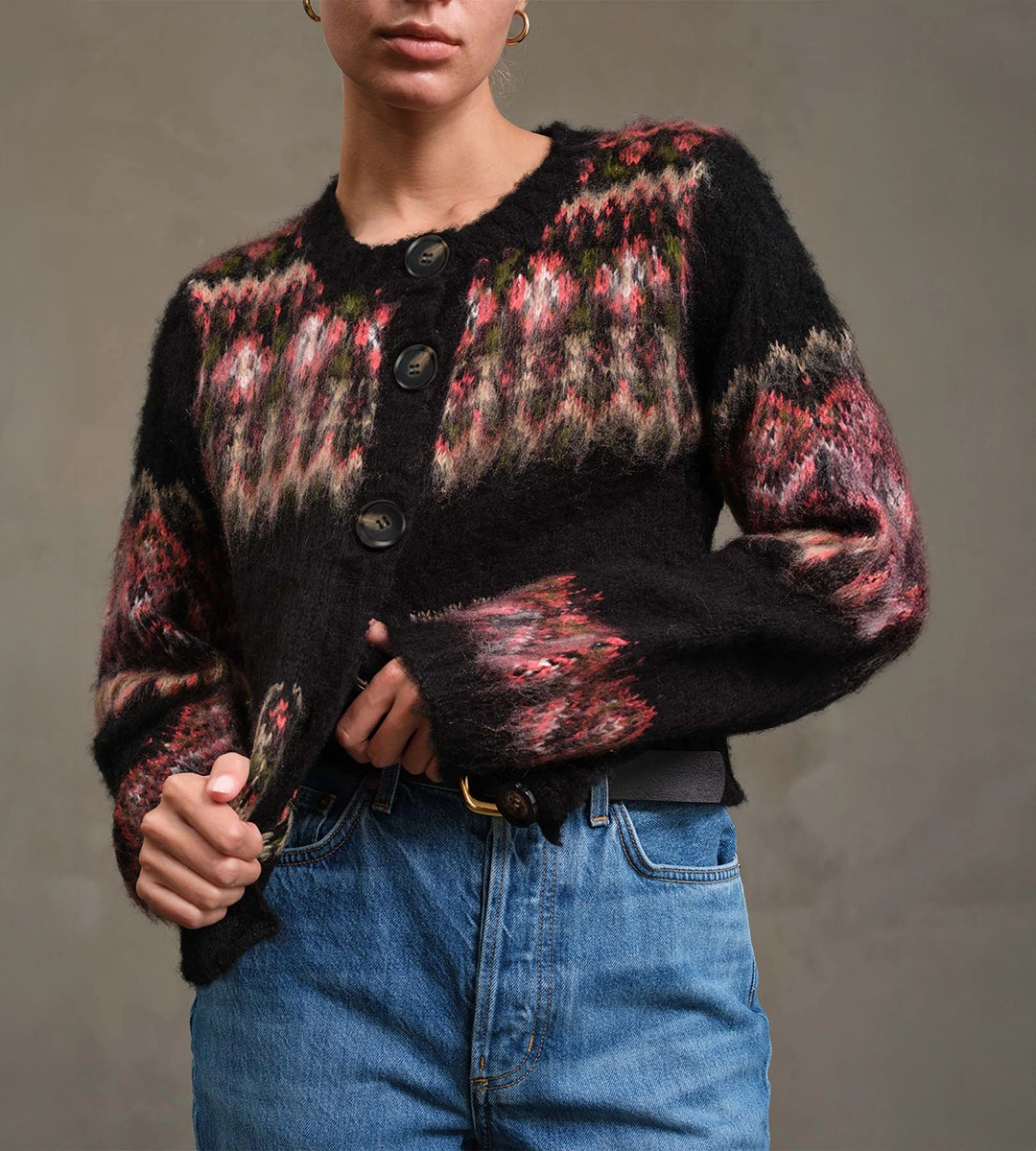 Cozy up in the Icelandic Fuzzy Knit Cardigan — a soft and eye-catching piece that blends vintage charm with modern flair. The relaxed fit, full-length sleeves, and statement buttons make it a perfect layering piece for fall and winter.
