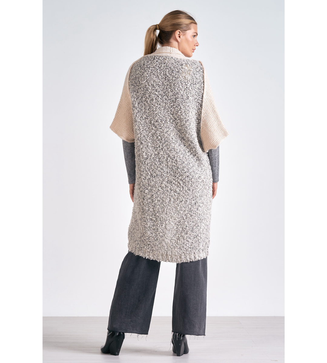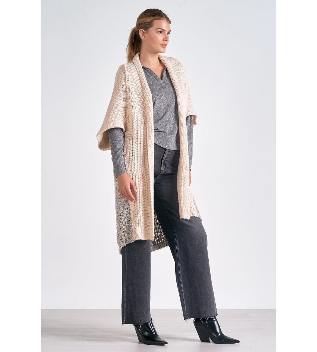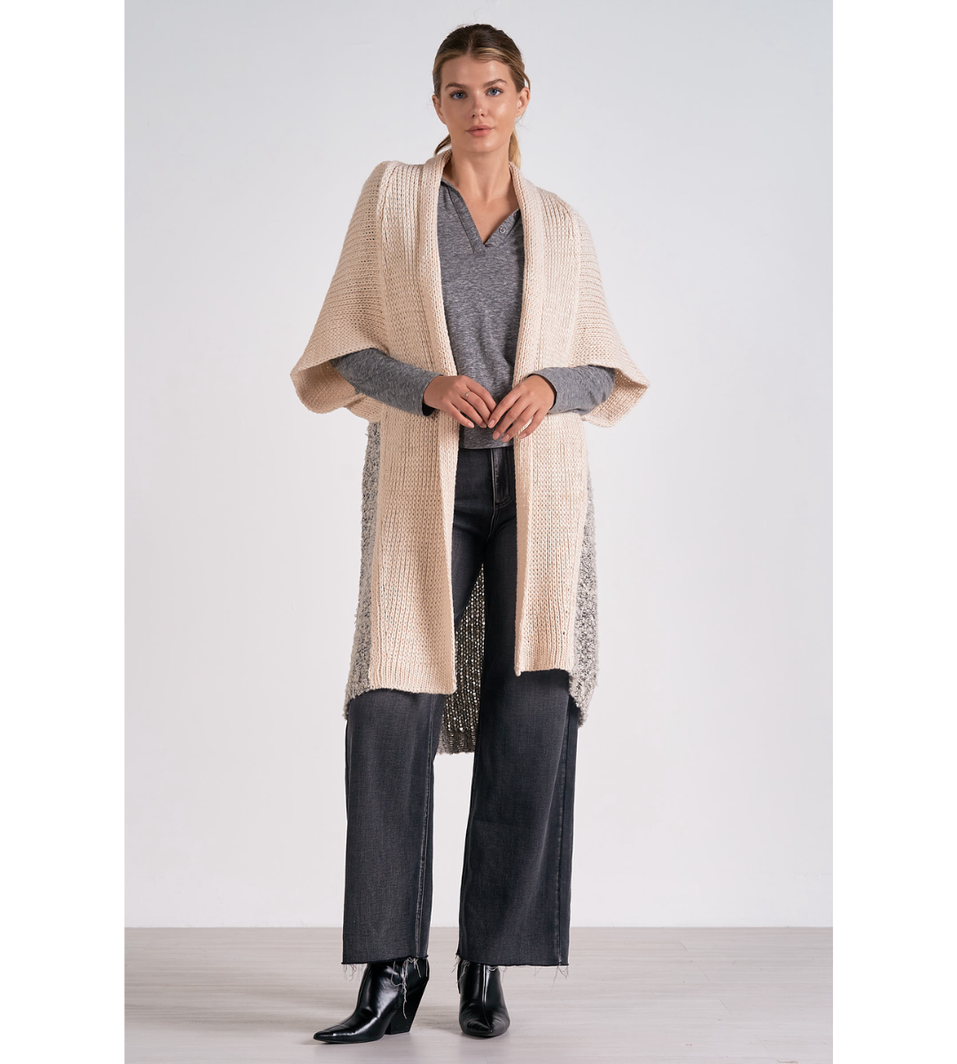 The Selma Cardigan is an effortless layer with a modern twist. Designed in an oversized silhouette, this two-toned sweater cardigan features an ivory stone front contrasted with a soft light grey back. With its open-front style and no closure, it drapes beautifully for a relaxed yet elevated look. Perfect for cozy days or polished layering, Selma brings versatility and ease to your wardrobe.