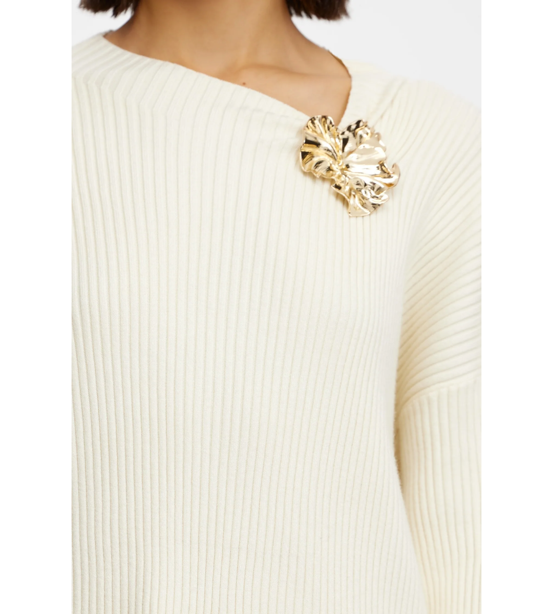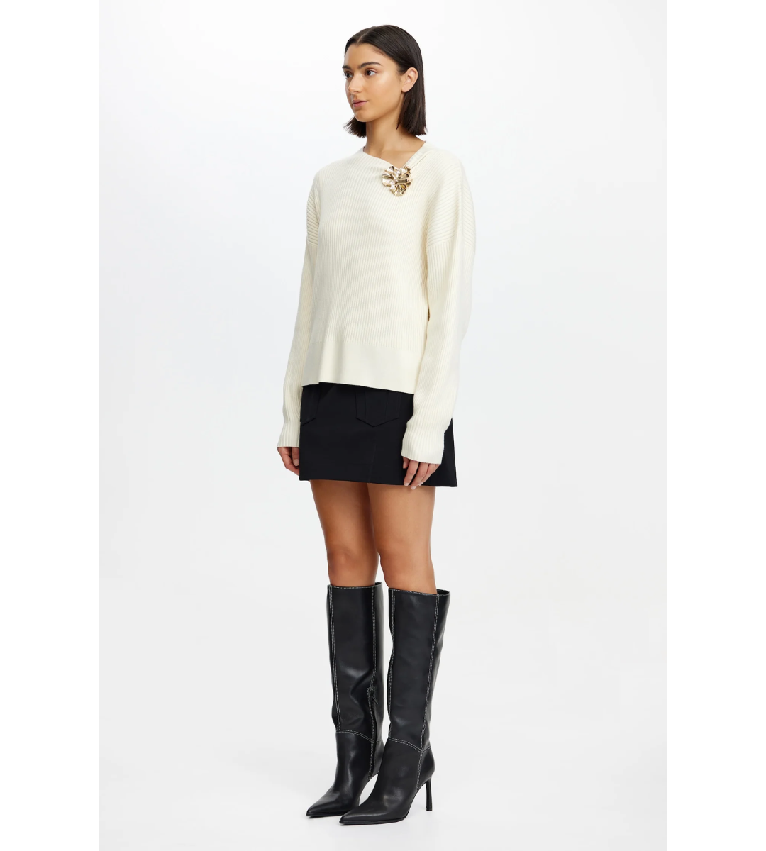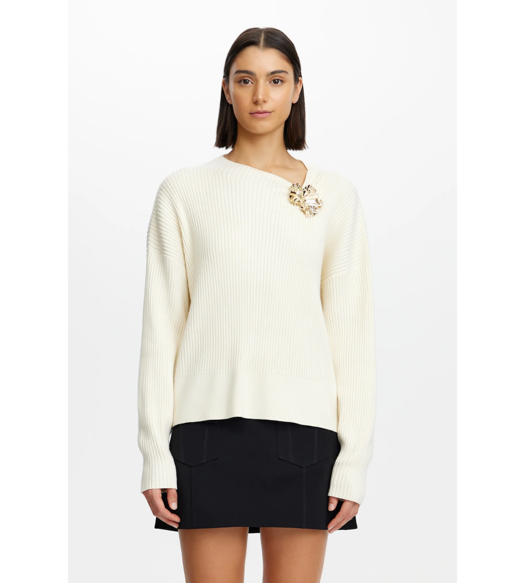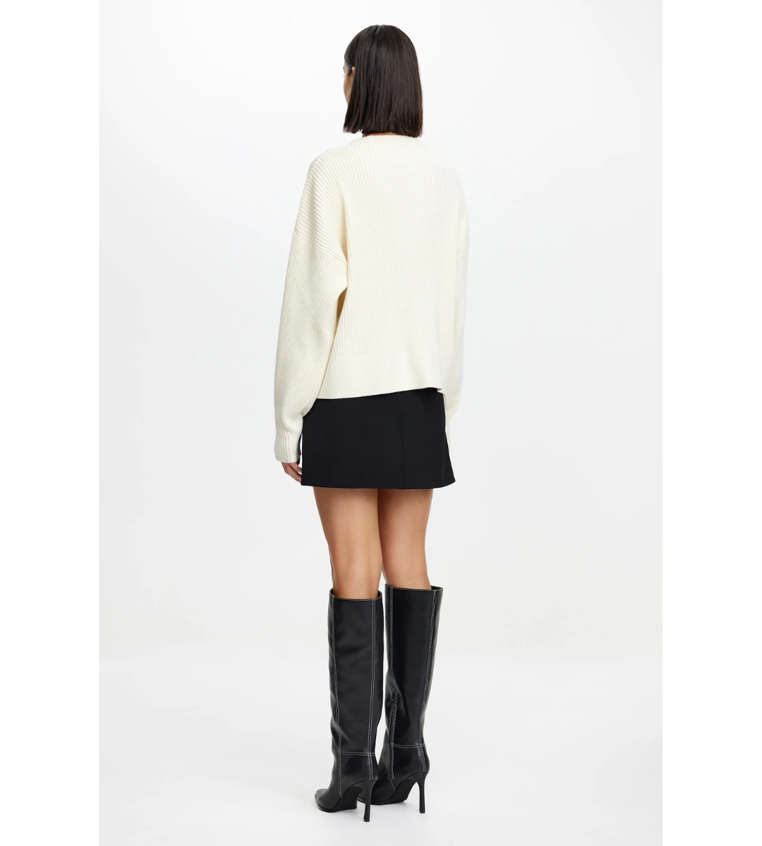 Effortless yet elevated, the Westie Knit in Pearl blends sculptural detail with everyday wearability. Designed in a soft, opaque knit, this long sleeve style features an asymmetric neckline and brushed metal hardware for a refined finish. A modern staple with textural interest, perfect for transitional styling with your favourite bottom.