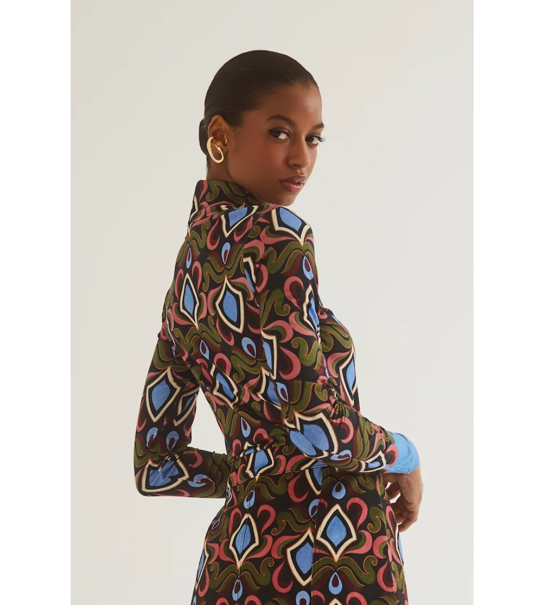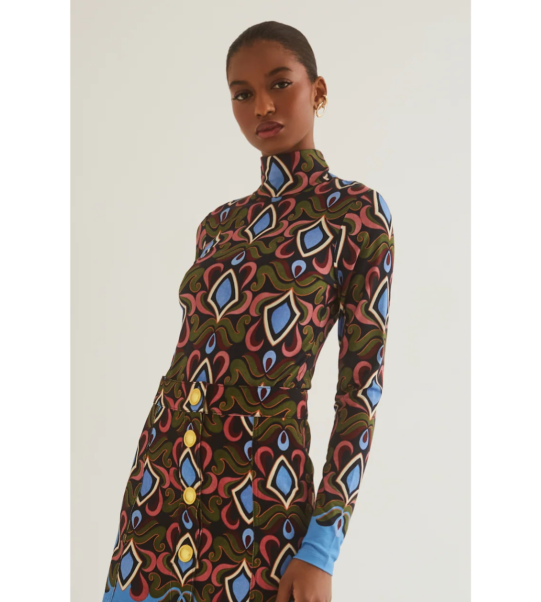The Piper Top is a luxe fluid modal jersey turtleneck in a placed print. Brilliant for cold weather layering and designed in Cara Cara's most-loved prints. The Piper is perfect for tucking into trousers!