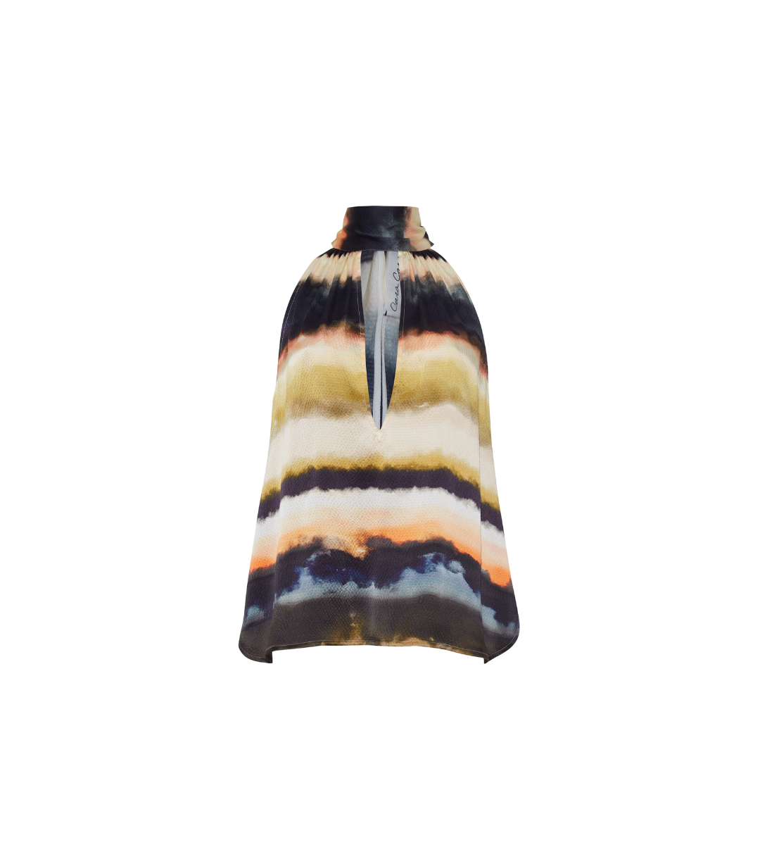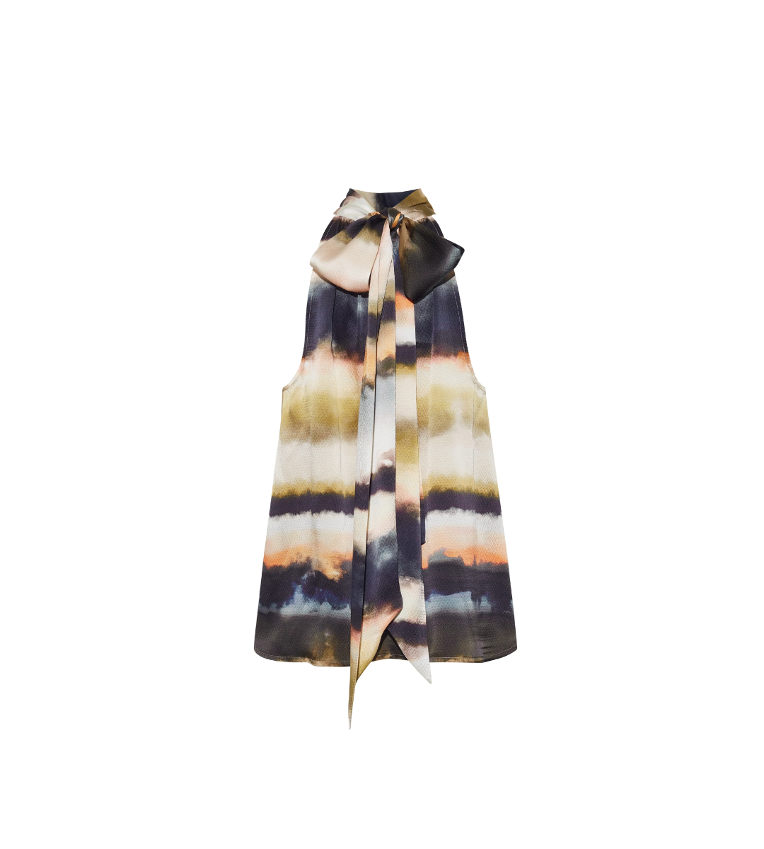 - Mockneck sleeveless blouse with long ties
