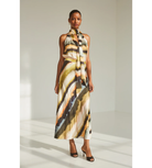 - Elliptical high-low hem with side slits