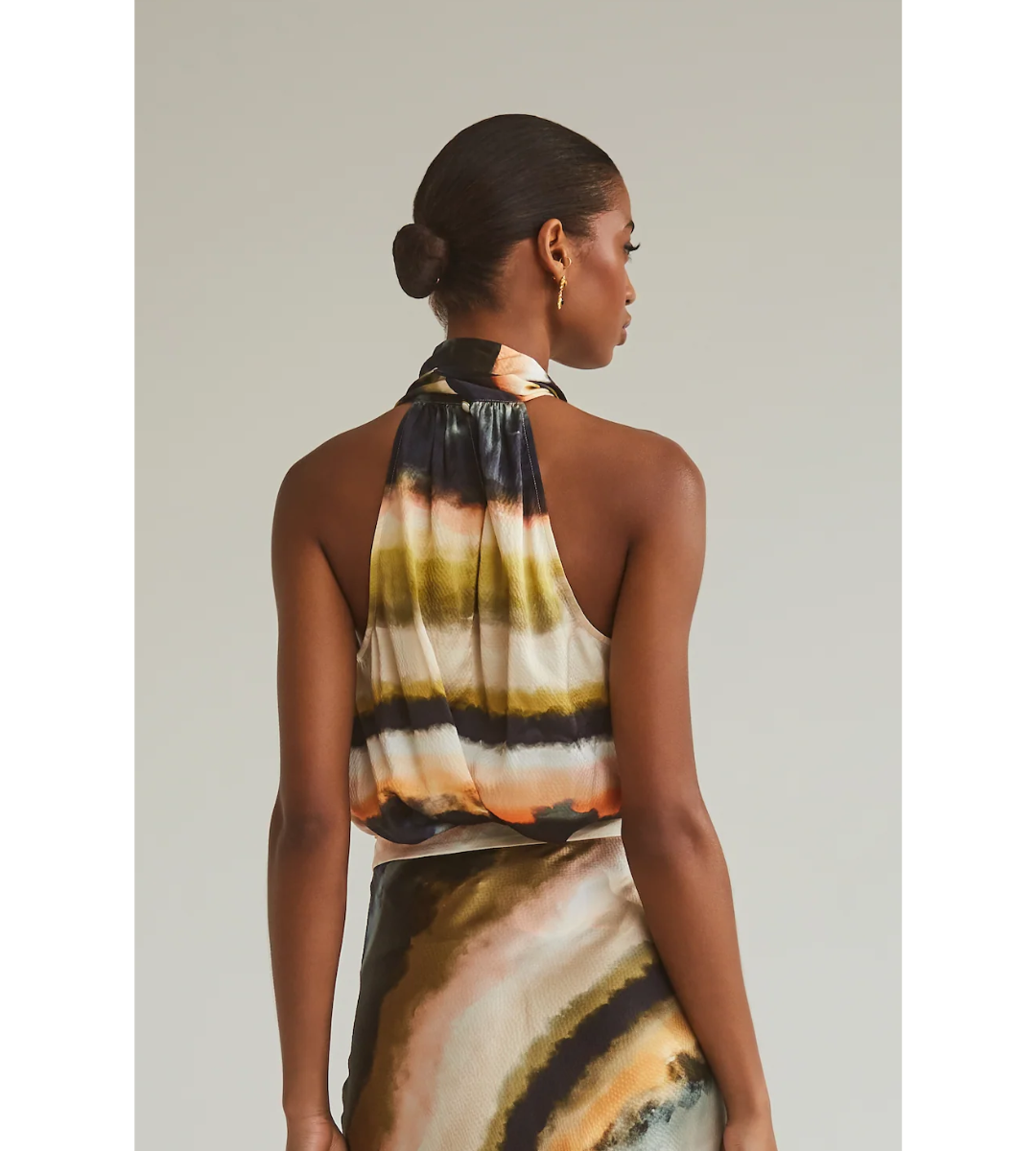 - Center back slit at back with self covered shank button with gold rim detail for closure