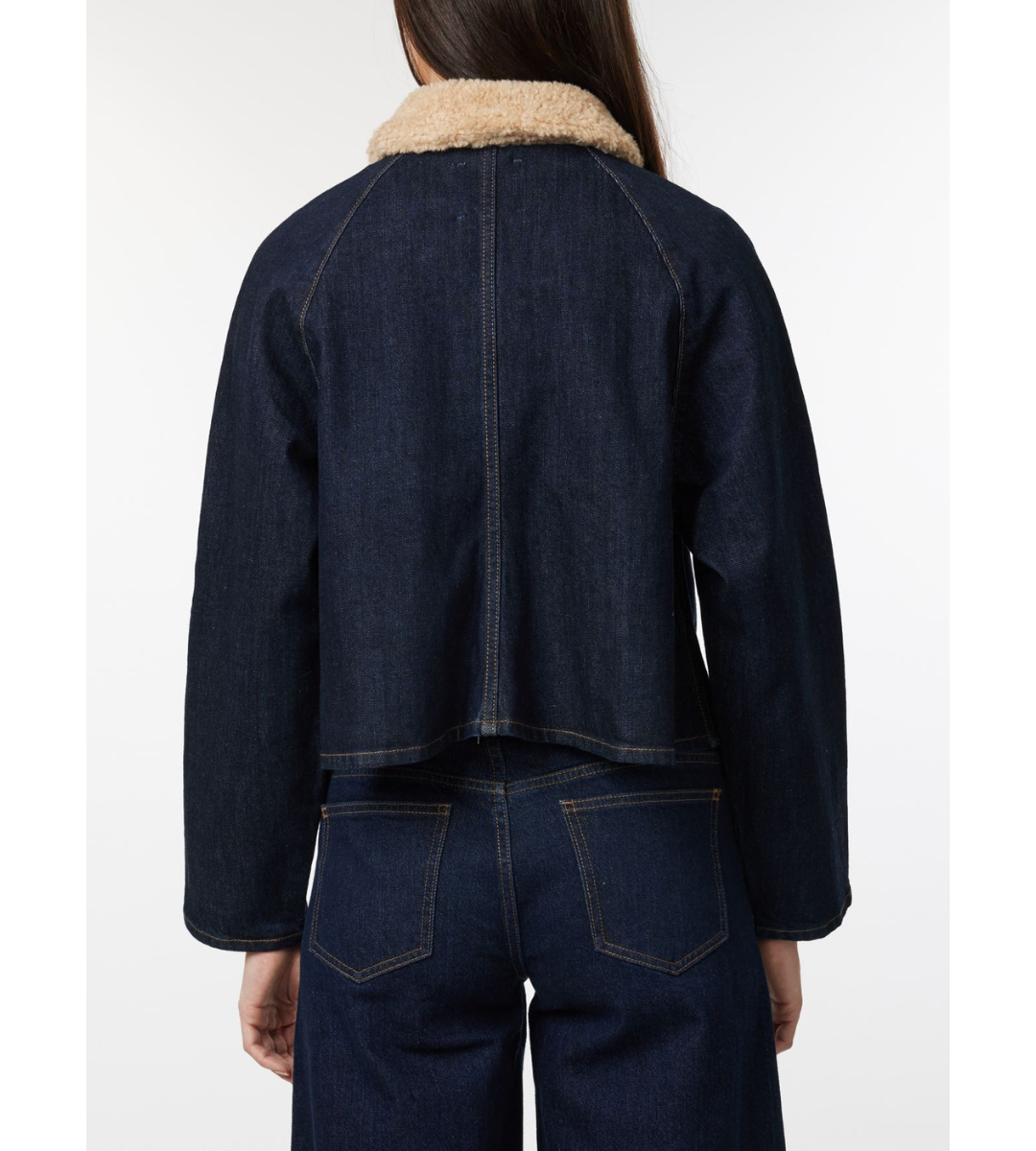 This denim cropped jacket is the perfect mix of cool and cozy, featuring a classic wash and a soft sherpa collar for added warmth and style. Its cropped cut makes it easy to layer over dresses, tees, or knits, giving any outfit a laid-back yet chic edge.