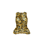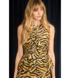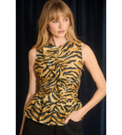 The Doering Top in Linen Silk Tiger Print is a striking new silhouette for the season and a hero piece in the holiday collection. Designed with architectural precision and feminine charm, it features a fitted V-neckline, cascading ruffles, flattering shirring, and a peplum waist that delivers a sculptural finish. Crafted in a bold yet wearable print, this sleeveless style balances artistry with versatility, making it a top that truly transforms any look.