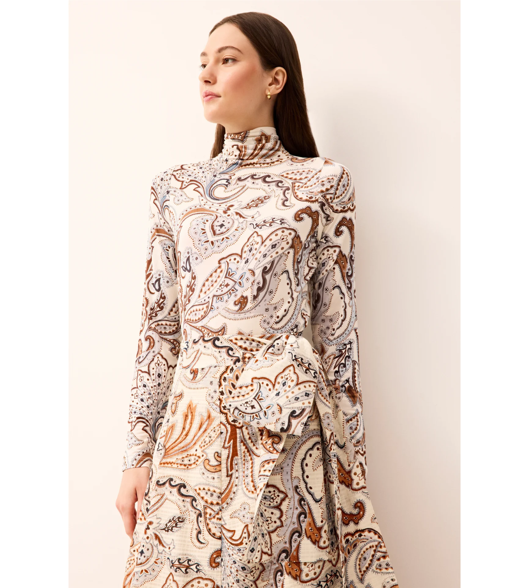 Give your winter wardrobe a refresh with Eloise. The foundational layering top returns in our favorite sumptuous knit fabric while a timeless blue-and-cream paisley print injects confidence and calm into your seasonal wardrobe, a welcome change in the post-holiday come down.