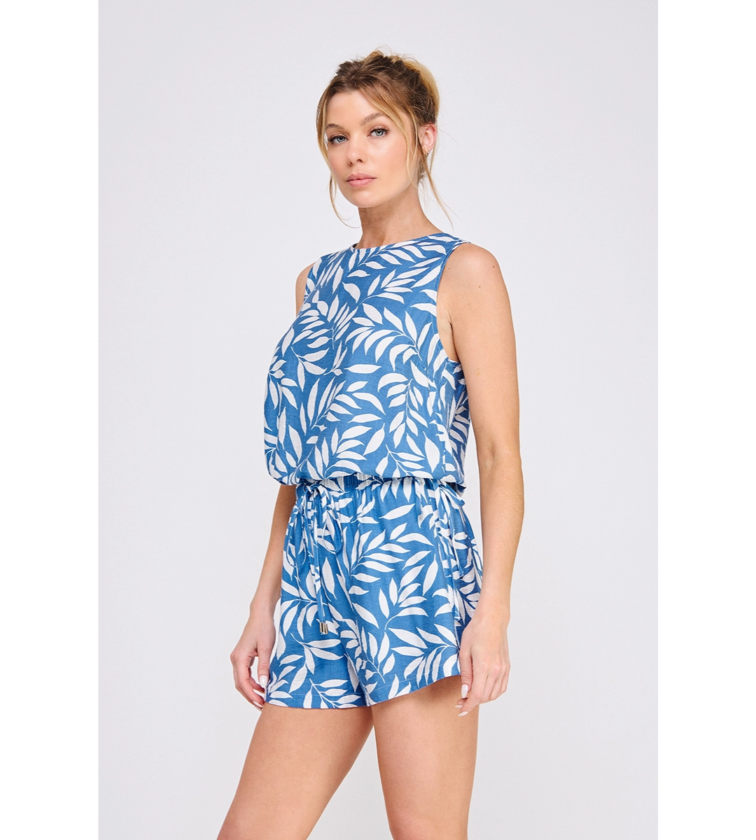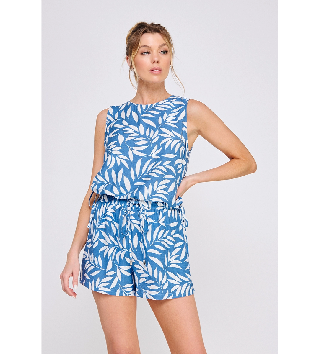 Light and breezy with a playful twist, the Esther Top features a blue and white print on a soft woven fabric. This sleeveless tank is designed with adjustable side waist ties, allowing you to customize the fit while adding a subtle cinch at the waist. Perfect for sunny days and effortless layering.
