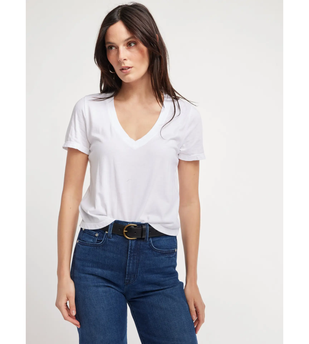 The Frankie Tee is your go-to essential for effortless, everyday style. Crafted from ultra-soft cotton, it features a relaxed silhouette with a flattering V-neckline and classic short sleeves. Its lightweight feel and timeless design make it perfect for layering or wearing solo. Whether tucked into denim or paired with tailored separates, the Frankie Tee delivers laid-back polish with ease.