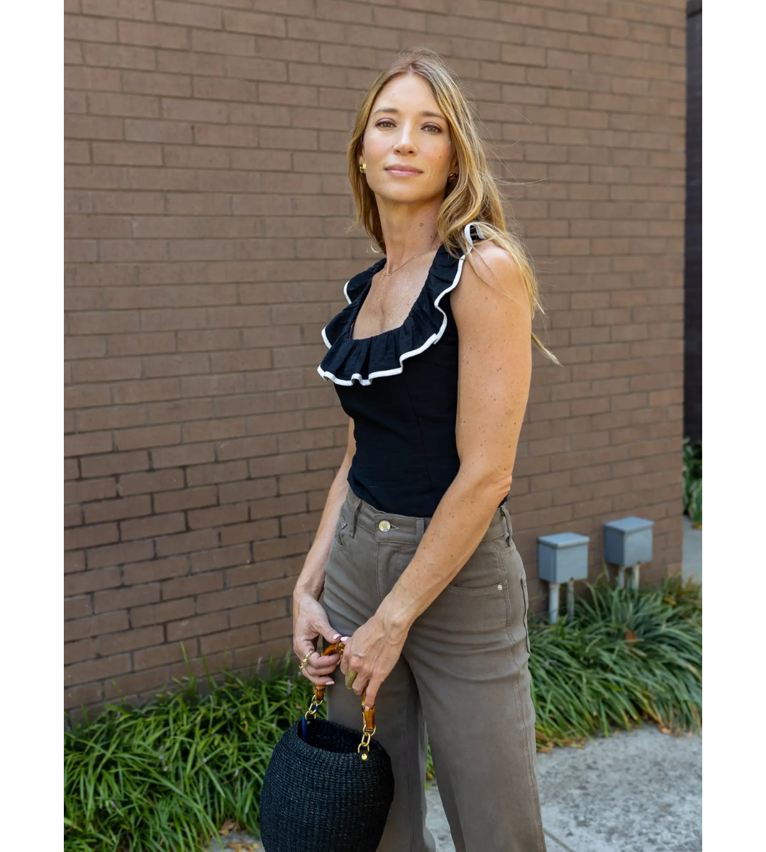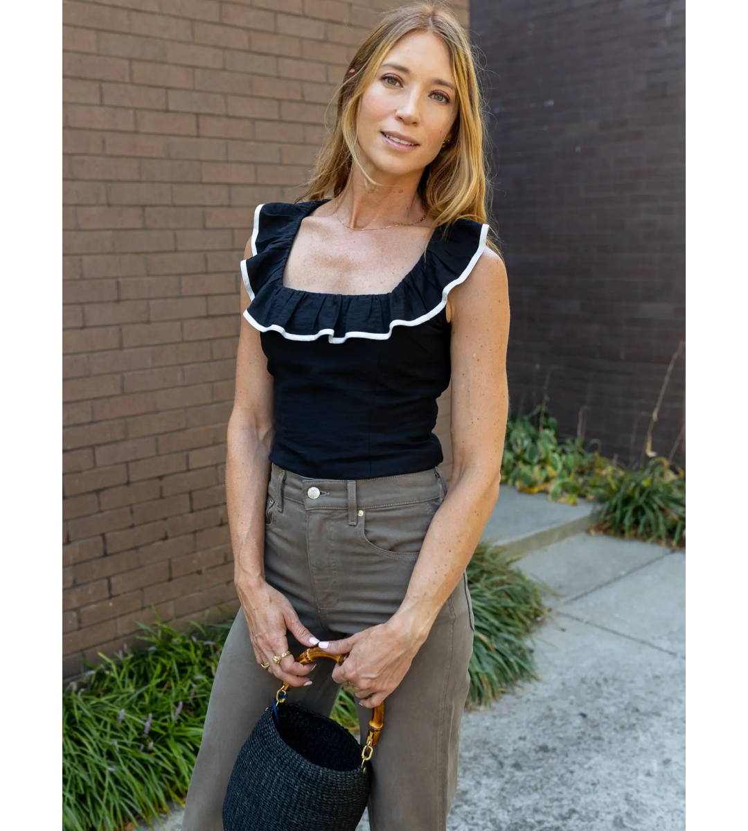 The Imogen top is going to be your new favorite elevated basic! This sleeveless top features a ruffled square edge neckline that is flattering on so many bust lines. This is a fitted top but with the smocked back, you can ensure a fitted look without compromising on comfort. This top can we worn very easily tucked in but is designed long enough to be worn untucked and hits right over the tops of your jeans.