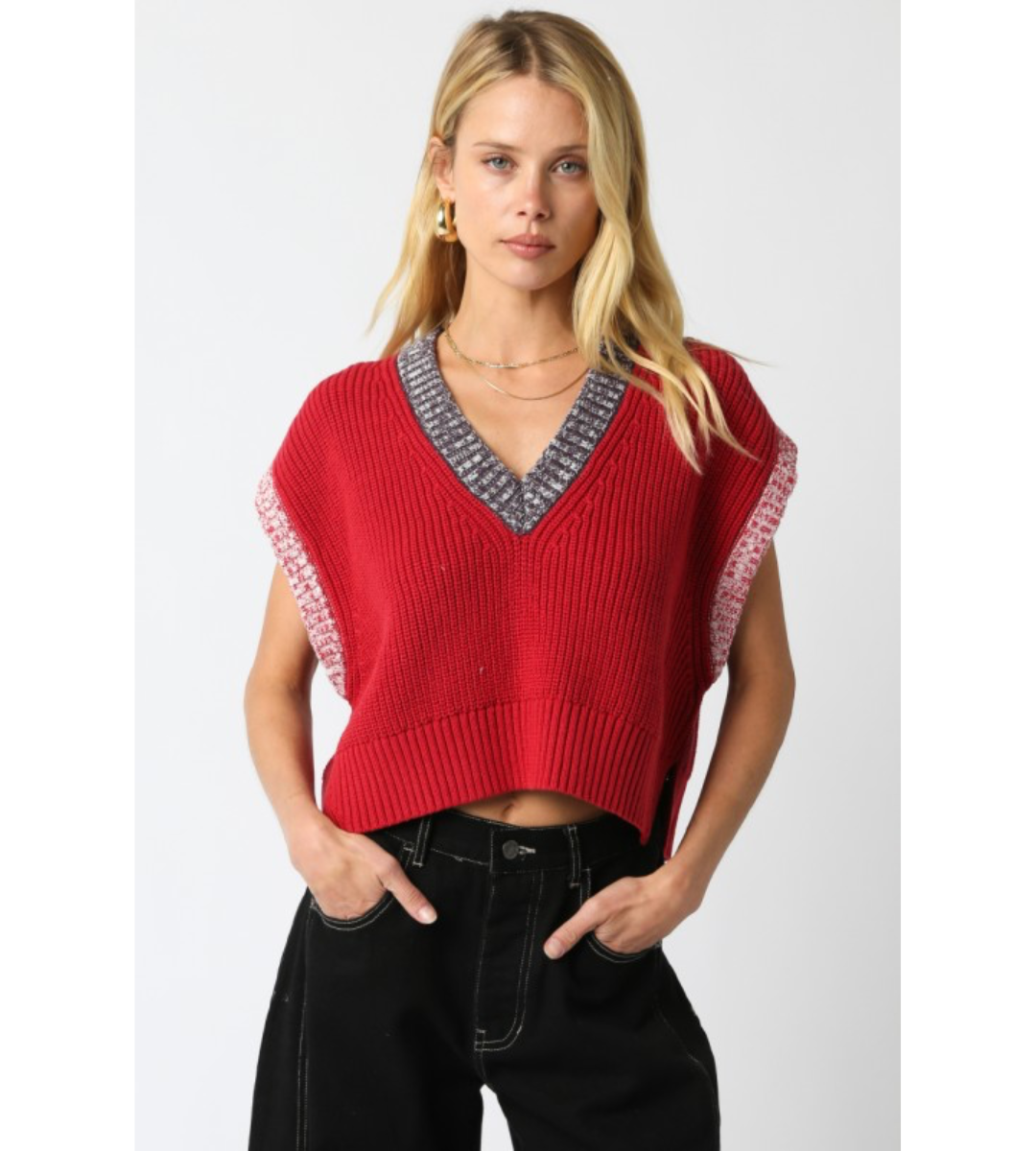 The Janae Knit Top brings effortless sophistication with its flattering V-neckline and sleek sleeveless silhouette. Crafted from a soft, stretchy knit, it’s the perfect elevated basic for layering or wearing solo.