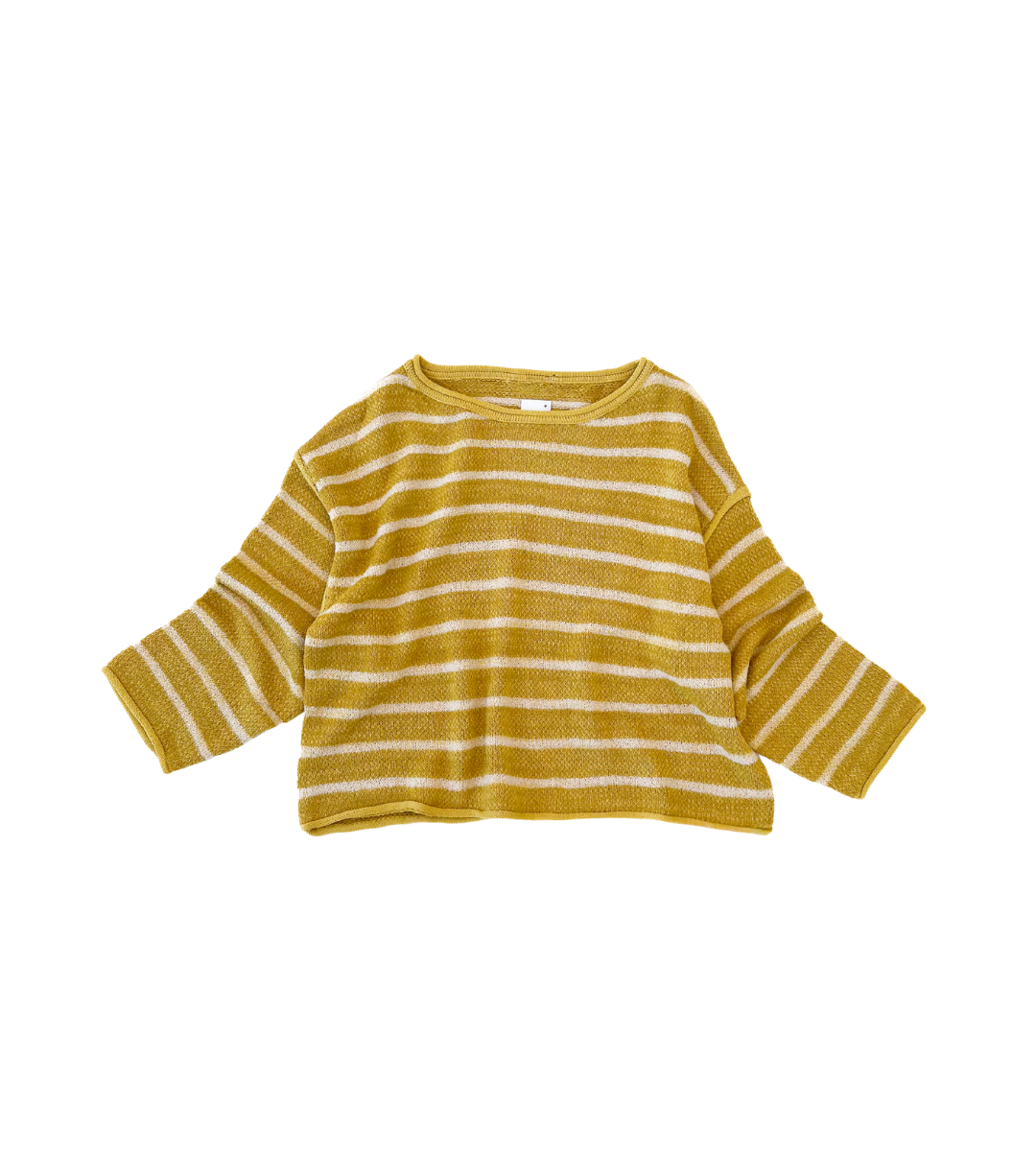 A sunshine-striped staple for easy days. The kelly sweater brings cozy texture and a relaxed, boxy fit to your fall lineup. soft yellow and cream stripes lend a cheerful pop of color, while the lightweight knit makes it perfect for layering. style it with denim, tailored trousers, or over a slip dress for that effortless, laid-back look.