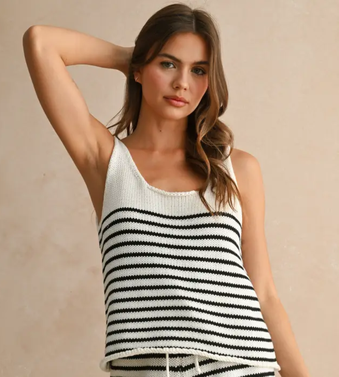 The Piper Tank is your go-to for easy, lightweight layering. Designed in classic black and white stripes, this airy knit tank is breathable and soft with a relaxed fit that feels effortless. Perfect on its own or styled under a jacket, it's a timeless piece with laid-back charm.
