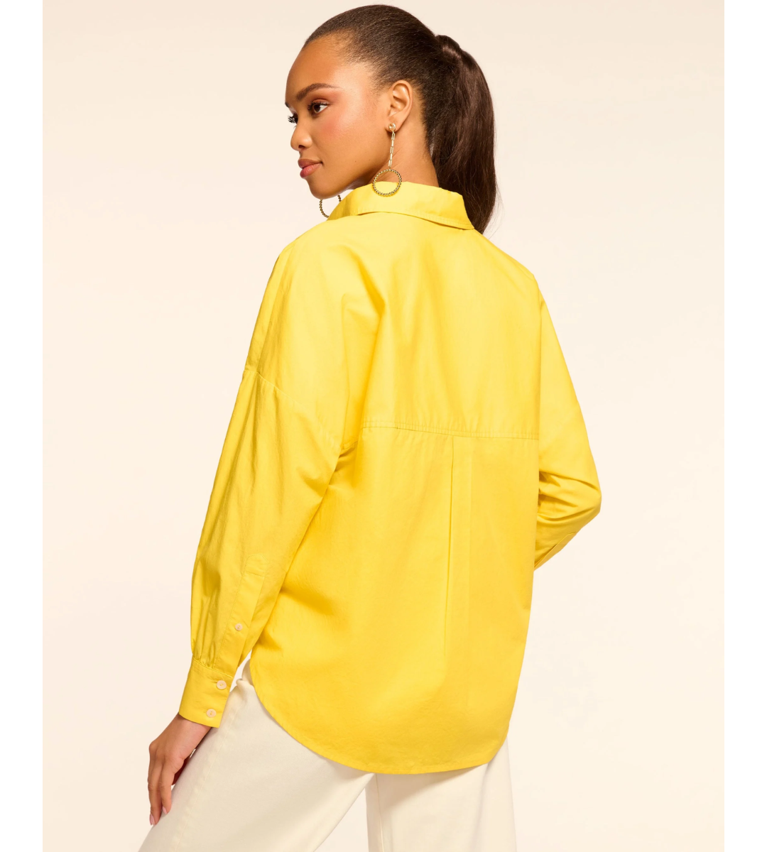 The Sarah is a fresh take on a classic button-down, featuring a curved elastic hem, relaxed fit, and long sleeves. Lightweight and bra-friendly, it’s a perfect everyday staple with a polished touch. Style with a statement layered necklace. By Ramy Brook.