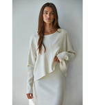 Stay warm without sacrificing style in this ribbed knit pullover sweater in a soft cream tone. Designed with a classic round neckline and long sleeves, it features subtle front slits that add a modern touch and easy movement.