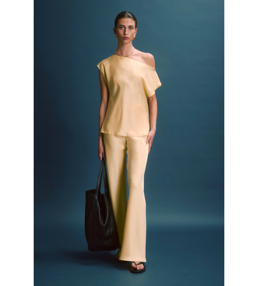 The Lucille Top embodies understated sophistication with its fluid silhouette and lustrous satin finish. Designed with a dramatic asymmetrical neckline that drapes elegantly off one shoulder, this top brings modern glamour to any ensemble. Perfect for evening wear or polished daytime looks, it pairs effortlessly with tailored trousers or skirts for a refined statement.