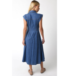 The Blair denim dress features a lightweight denim fabric with soft texture and a button down front with ruched waist detail for a flattering fit.