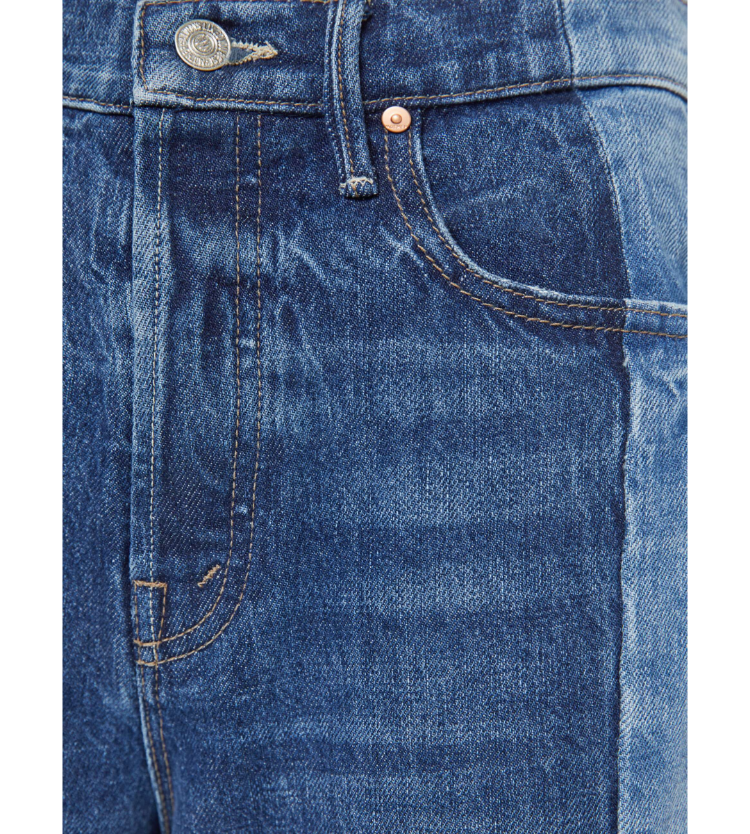 Made ya look. High-waisted wide-leg jeans with a button fly, long 32-inch inseam and a frayed, uneven hem. Made from rigid SUPERIOR denim, Double Take is mid blue with whiskering, fading and lighter panels down the outer leg.