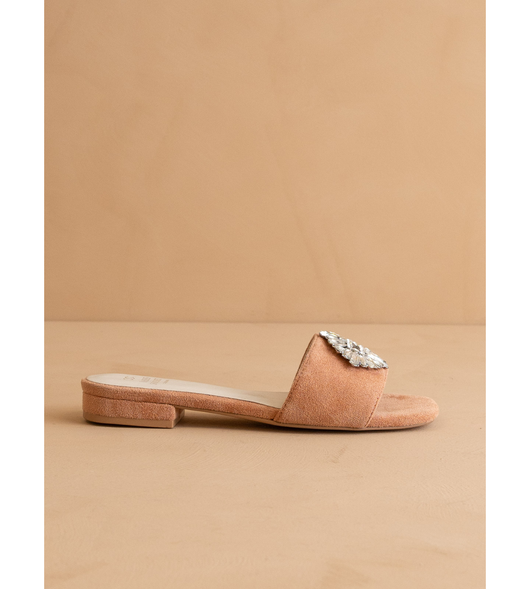 Bring a little sparkle to your day with the Dream Sandal in soft peach. This ultra-chic suede sandal features a dazzling brooch detail that adds just the right amount of glam. Elegant yet effortless, it's the perfect pair to elevate your everyday or dress up for special occasions.