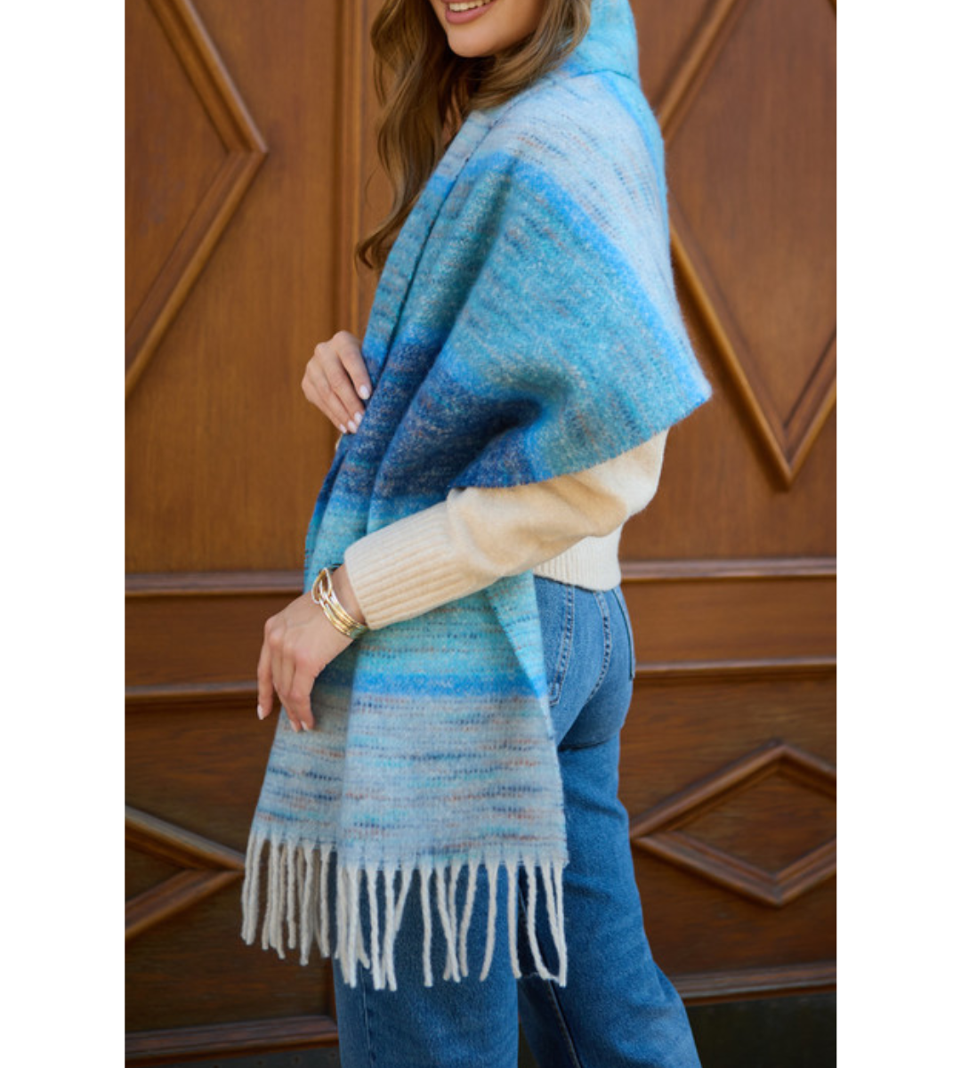 Brighten up those chilly days with this stunning oversized scarf featuring a vibrant gradient of blues. From deep ocean hues to soft sky tones, this statement piece adds an instant pop of color to any winter ensemble.