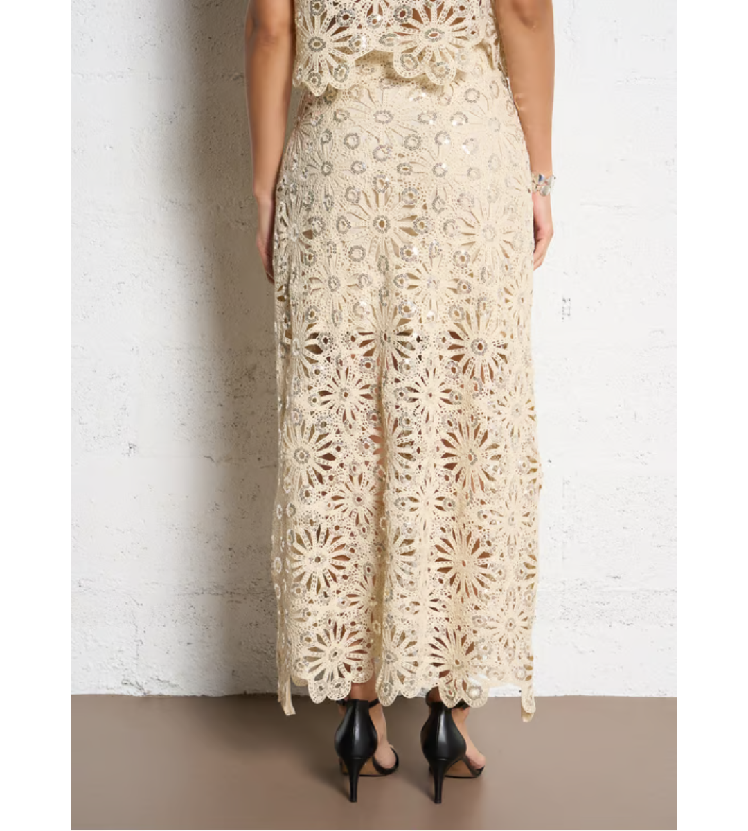 - Fitted at the waist with a relaxed drape through the leg, high-waisted.