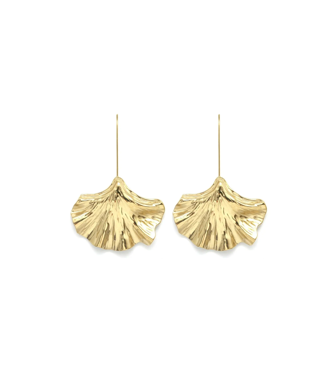 Elevate your style with these Gold Fan and Stone Earrings, a perfect blend of elegance and artistry. Featuring a delicate fan-shaped gold design paired with a carefully set semi-precious stone, these earrings strike the ideal balance between bold and refined.