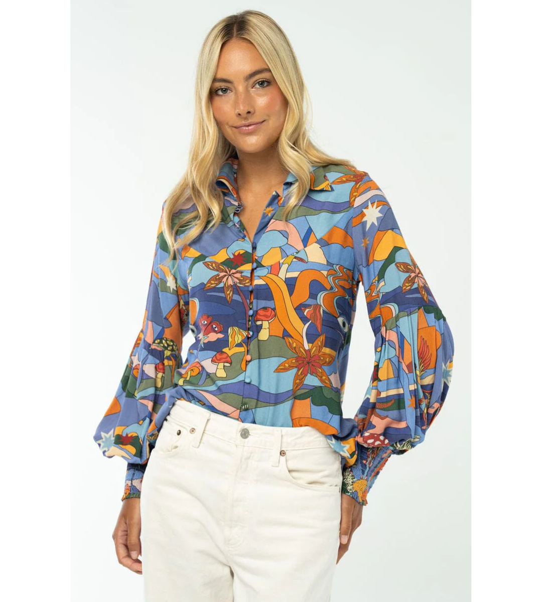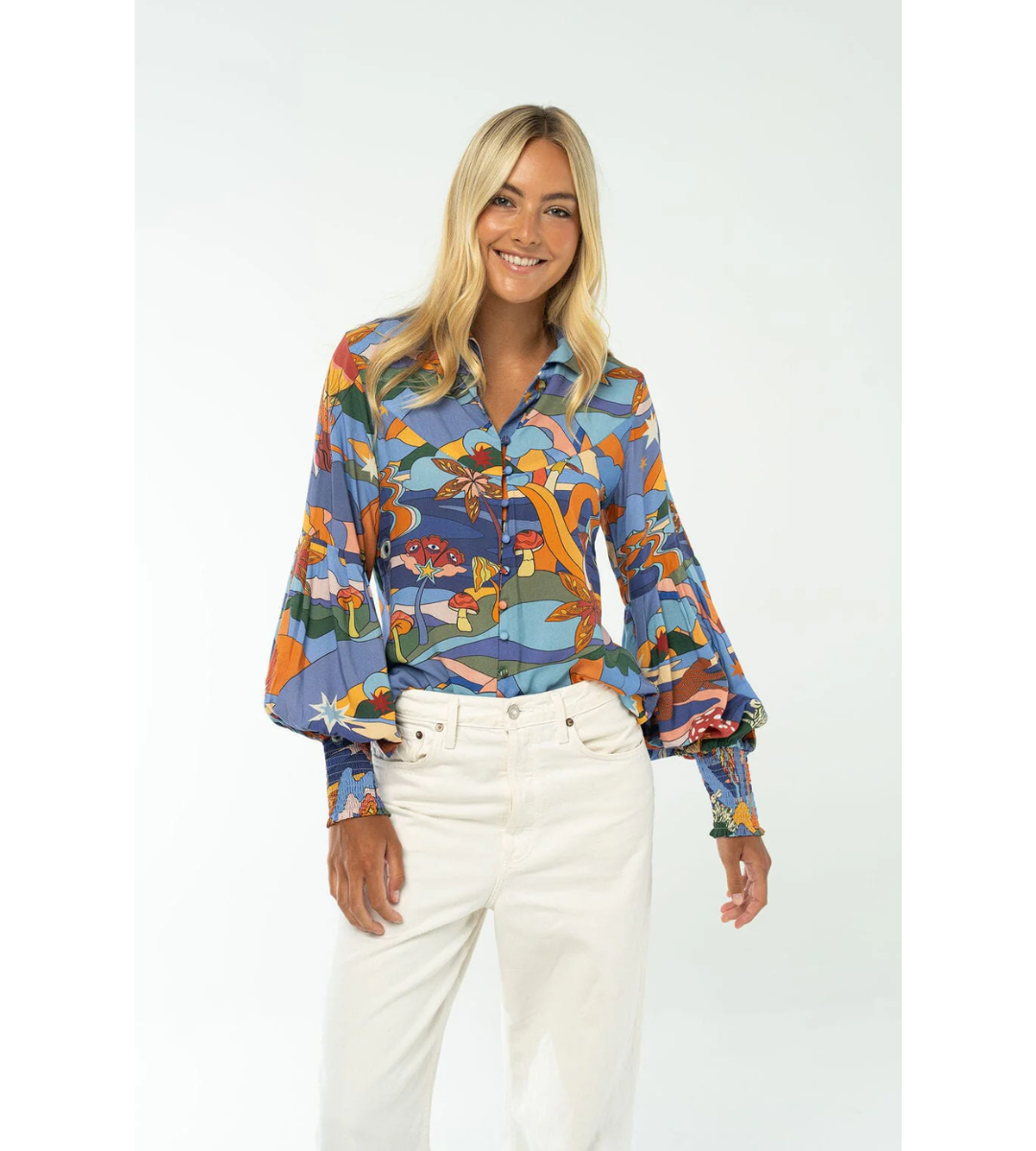 The Samantha Top delights with its billowy sleeves and fun, eye-catching print. Crafted from soft fabric, it offers a comfortable fit that moves with you. Perfect for adding a playful touch to your everyday wardrobe, this top easily pairs with jeans or skirts for a vibrant, relaxed look.