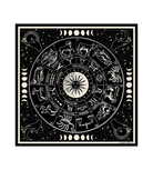This black zodiac-printed silk scarf brings celestial charm to a timeless accessory. It features a smooth, luminous finish and lightweight drape. The cosmic print showcases intricate zodiac symbols in delicate detail, adding a mystical yet modern touch.