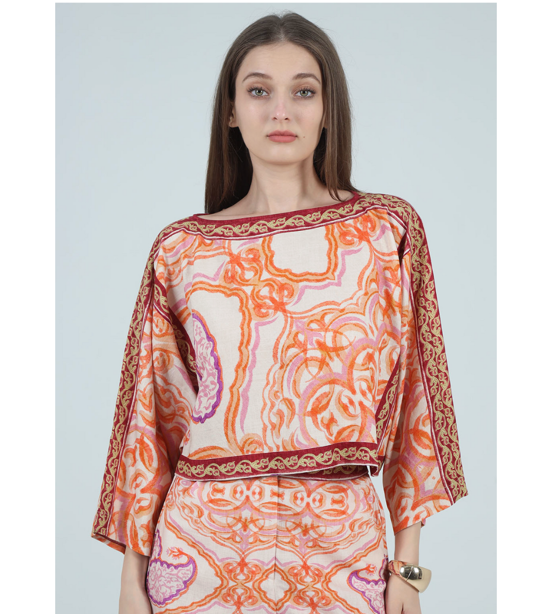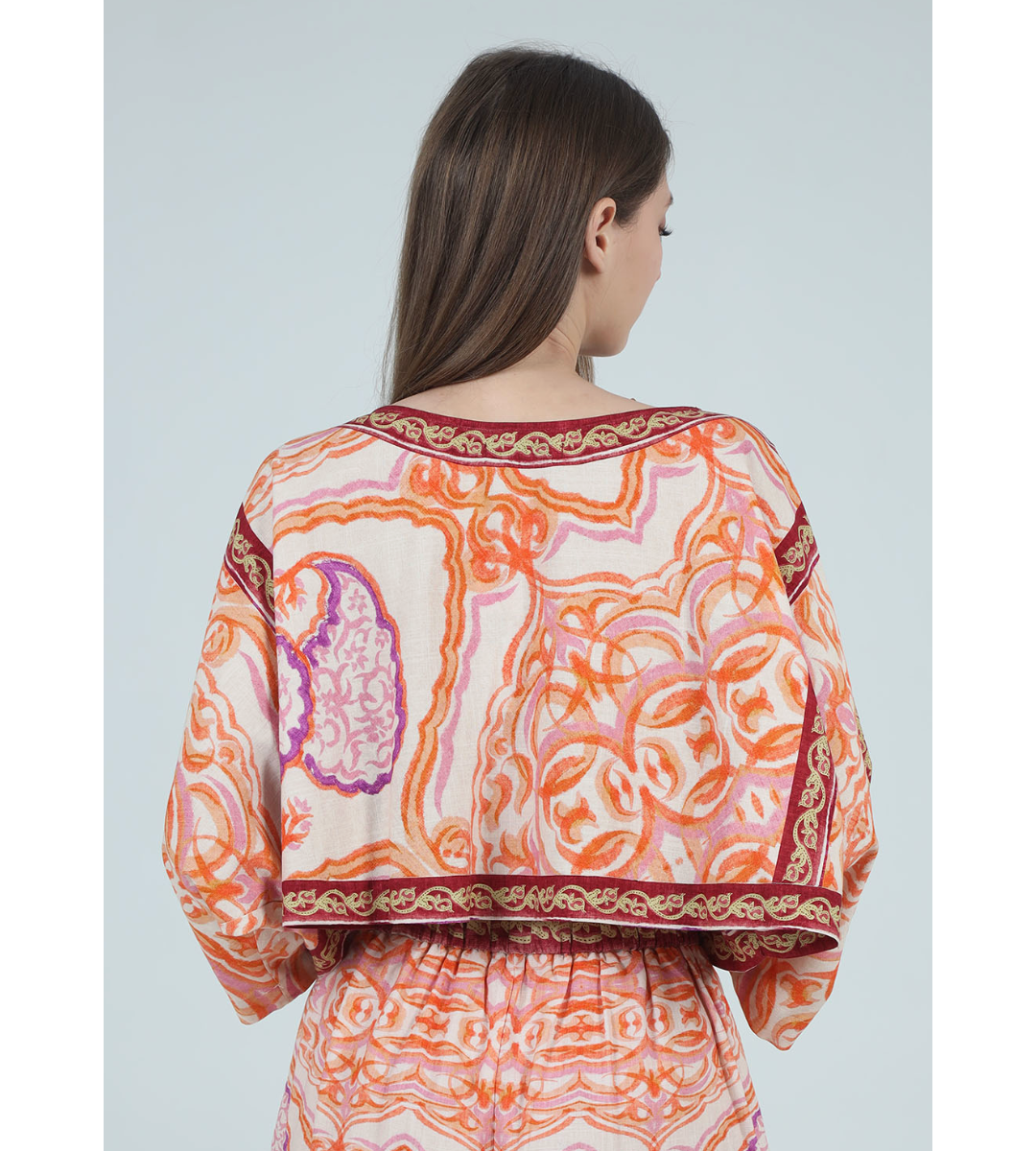 Embrace effortless bohemian luxury with the Alexa Kimono Blouse, a masterpiece of intricate design and breezy comfort. This statement piece blends a relaxed, airy silhouette with ornate detailing, making it the perfect choice for upscale vacations or sun-drenched garden parties