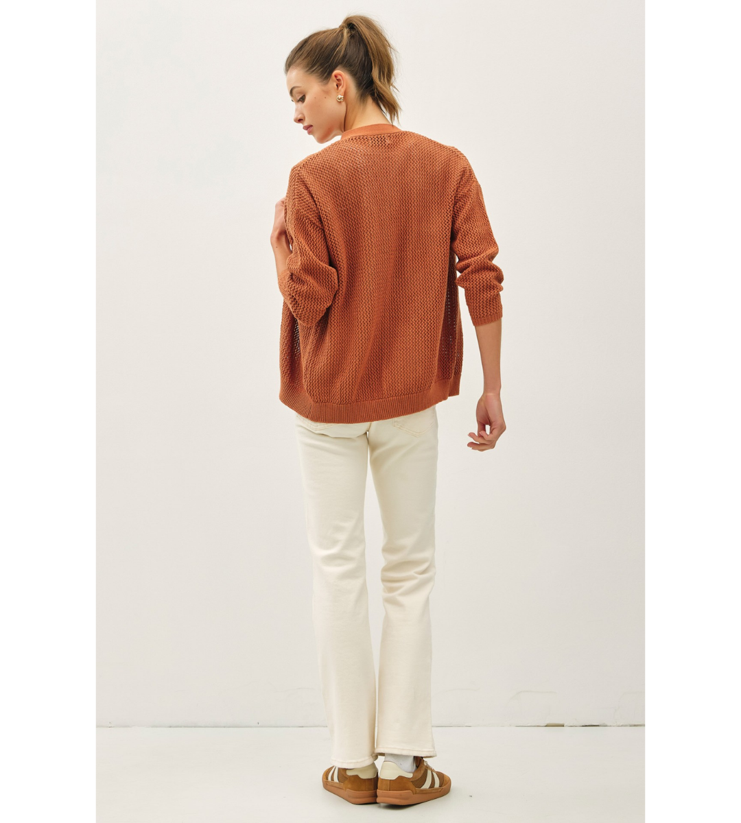 Add a touch of earthy warmth to your wardrobe with the Alice Cardigan in rich Terracotta. Featuring long sleeves, ribbed hems, and a classic open front, this cotton sweater combines comfort and style with a flattering fit. Perfect for layering over casual or dressy looks alike.