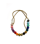 Elevate your look with this vibrant, handmade beaded necklace. Featuring a striking array of colorful gemstones—from quartz to turquoise—this unique, adjustable piece on a tan cord is perfect for adding an artistic, contemporary touch to any outfit.