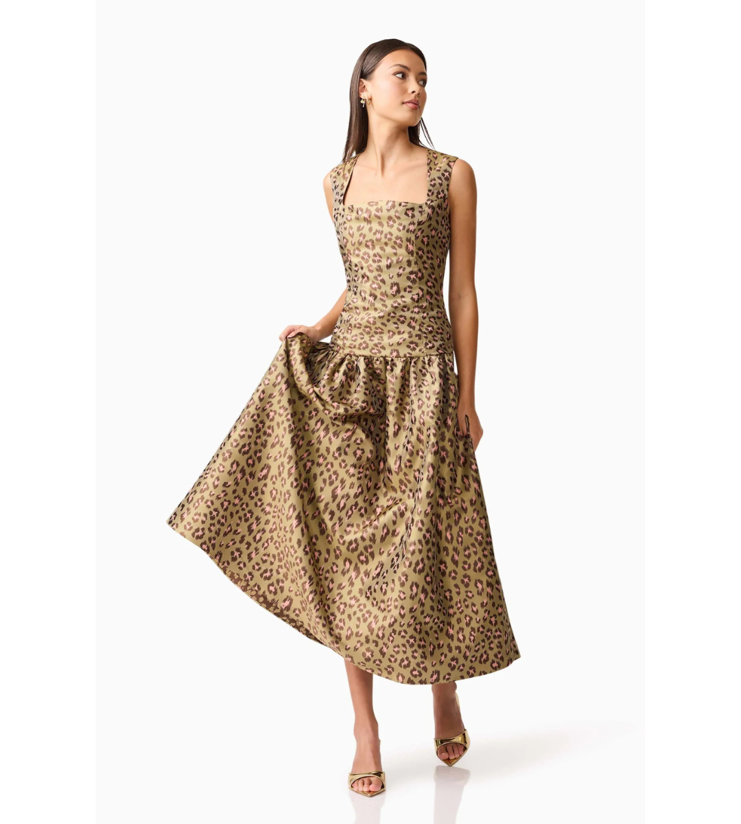 Effortlessly statement-making, the Elara Drop Midi Waist Dress in Leopard Print is a bold yet refined piece designed for elevated everyday wear. Featuring a rounded neckline and regular fit silhouette, this midi dress flatters without feeling overly structured. The dropped waistline creates a subtle lengthening effect, transitioning into a gently gathered skirt that moves with ease.