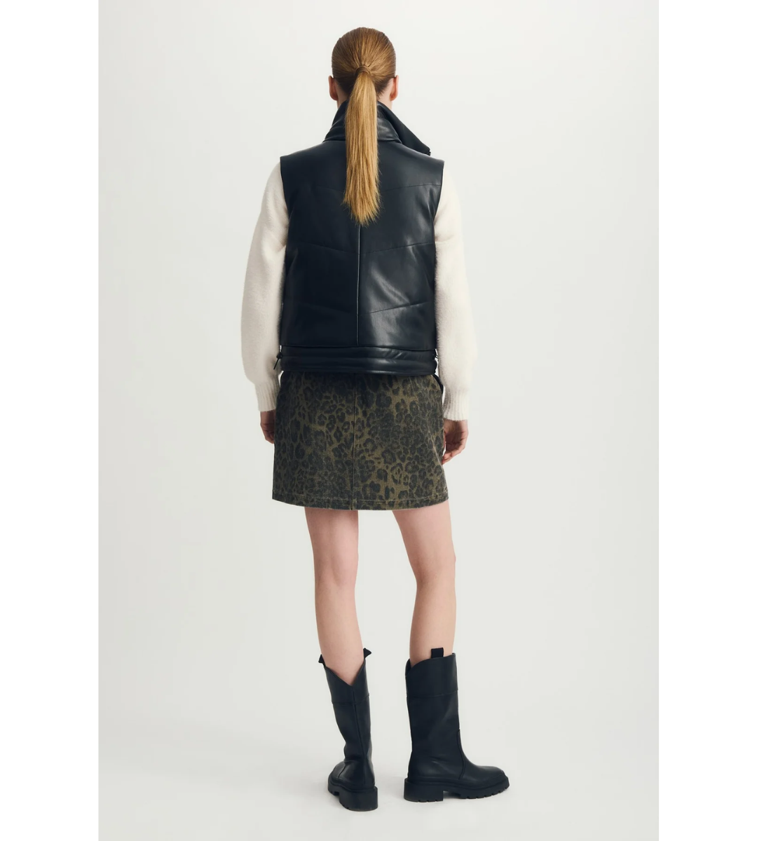 The Nox Vest by Melissa Nepton brings sleek versatility to your wardrobe with its contemporary, reversible design. Crafted from supple black faux leather, this piece delivers effortless edge while remaining soft and comfortable to wear. One side features a smooth, minimalist finish for a polished look, while the reverse offers a subtle texture for added depth and dimension.