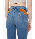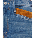 A blast from the past. A high-rise flare with a zip fly, off-center back pockets, a long 34-inch inseam and a clean hem. Made from rigid SUPERIOR denim, Remember When is a mid-blue with whiskering and fading at the knees and corduroy trim on the pockets.