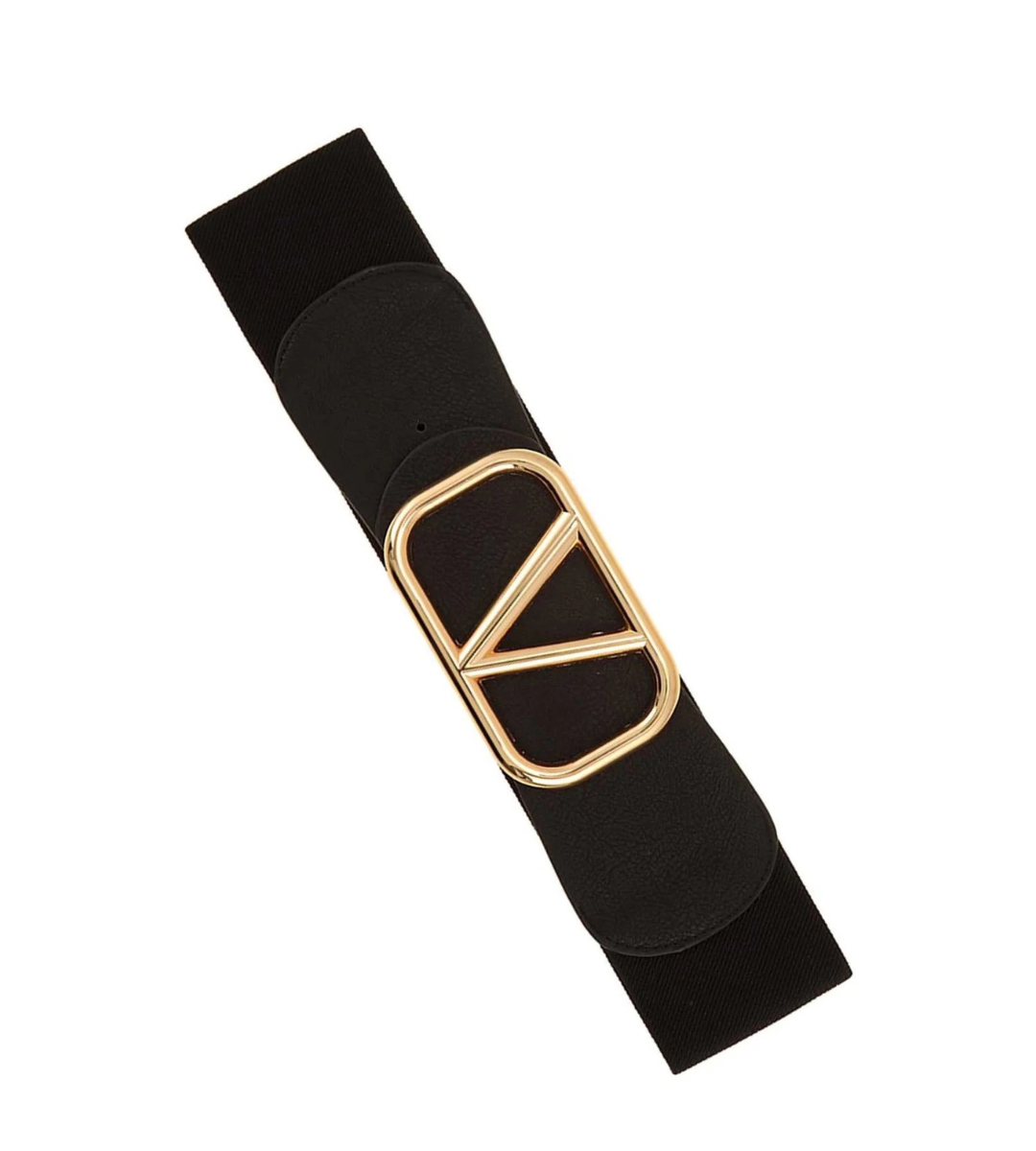 Sleek, structured, and endlessly versatile, this wide black belt features a bold gold "V" buckle that instantly elevates any look. Crafted with a smooth faux leather finish and a modern minimalist silhouette, it adds just the right amount of edge and elegance to both casual and dressy outfits.